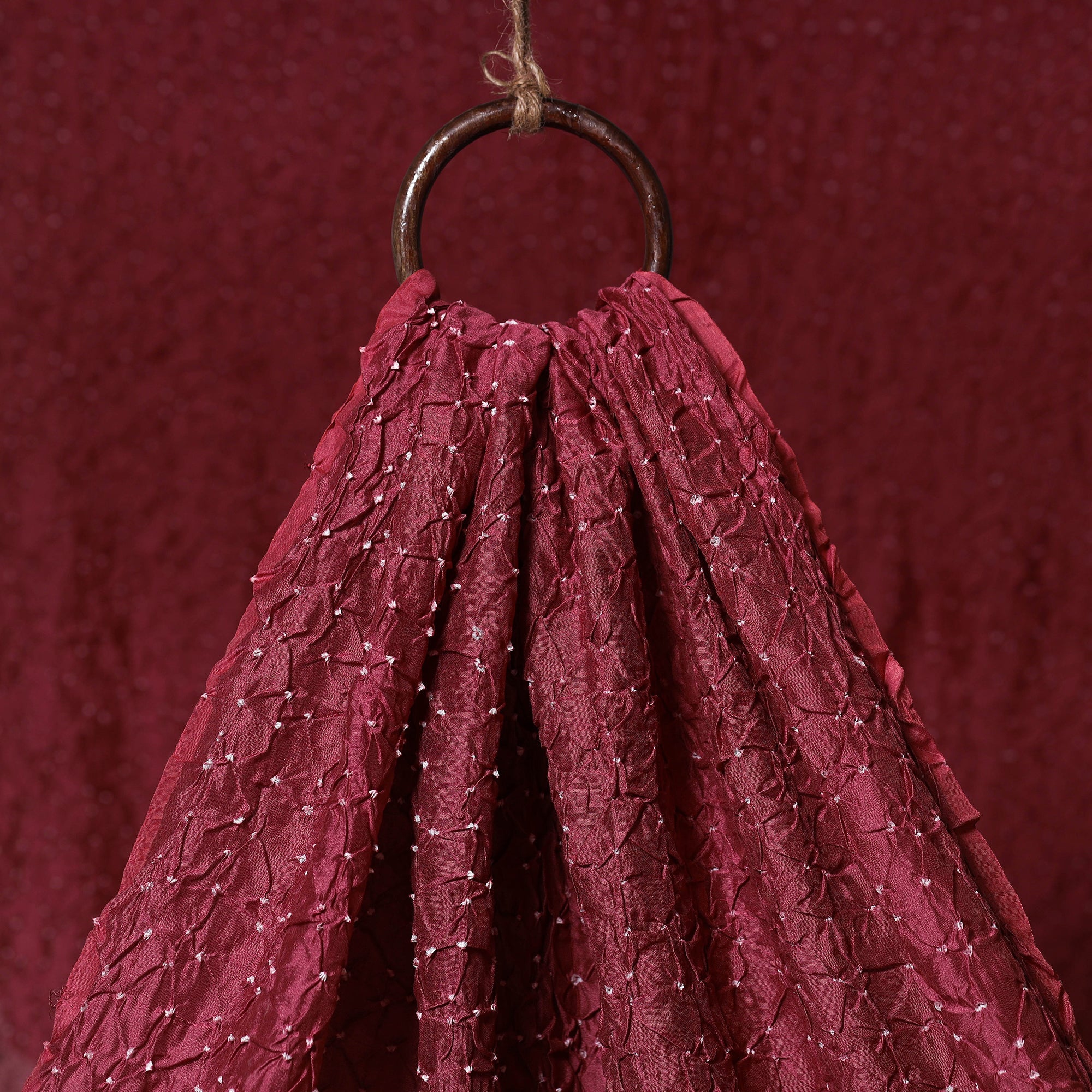 Maroon - Kutch Tie-Dye Chanderi Silk Bandhani Fabric 02
