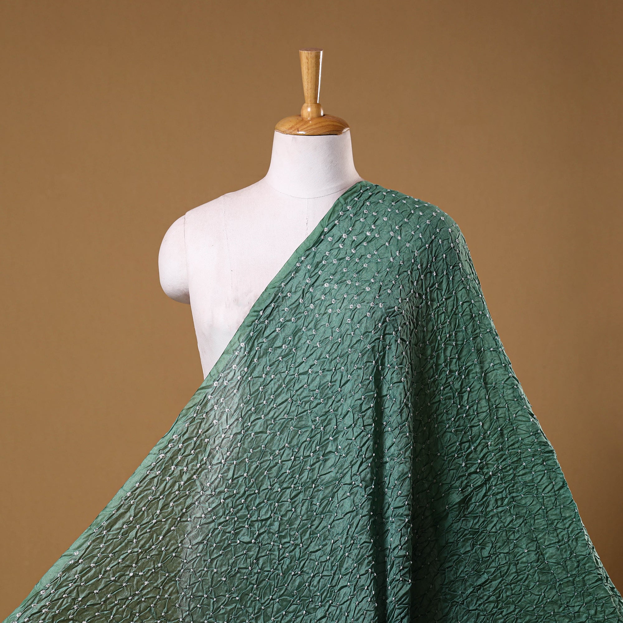 Green - Kutch Tie-Dye Chanderi Silk Bandhani Fabric 09
