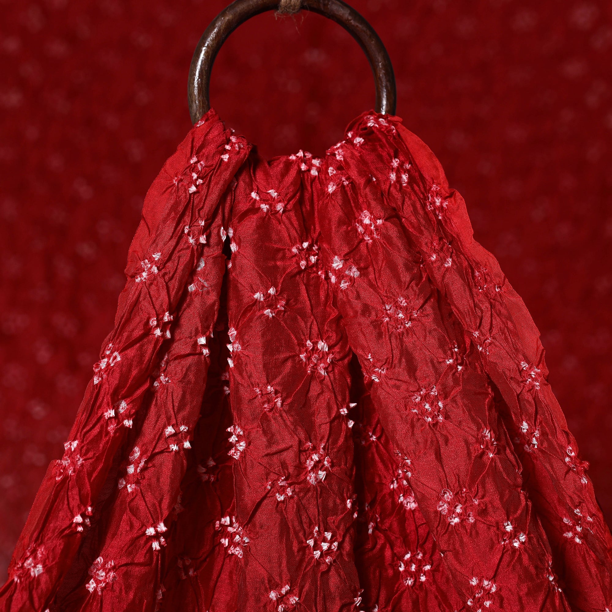 • Red - kutch tie-dye chanderi silk bandhani fabric 13