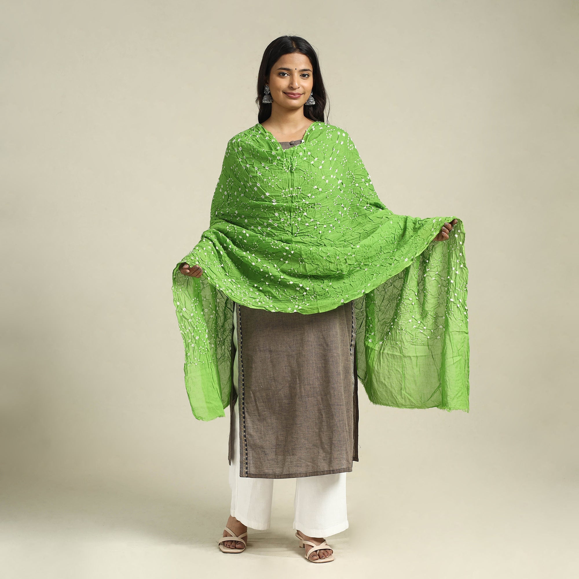 This Green Kutch tie-dye cotton bandhani dupatta is crafted using traditional techniques, where the fabric is carefully hand-tied and dyed to create intricate patterns. Soft and breathable, it is perfect for casual outings, festive occasions, or everyday styling.