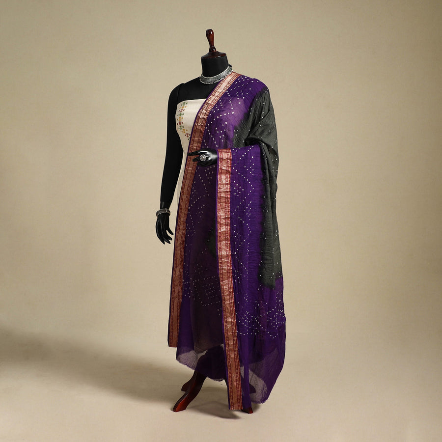 Experience the beauty of Kutch's traditional tie-dye artistry with a grey bandhani dupatta. Each piece is created by skilled artisans using the bandhej technique, where fabric is carefully tied at multiple points before being dyed to reveal intricate patterns. Crafted in cotton, it is ideal for festive occasions as well as everyday wear.