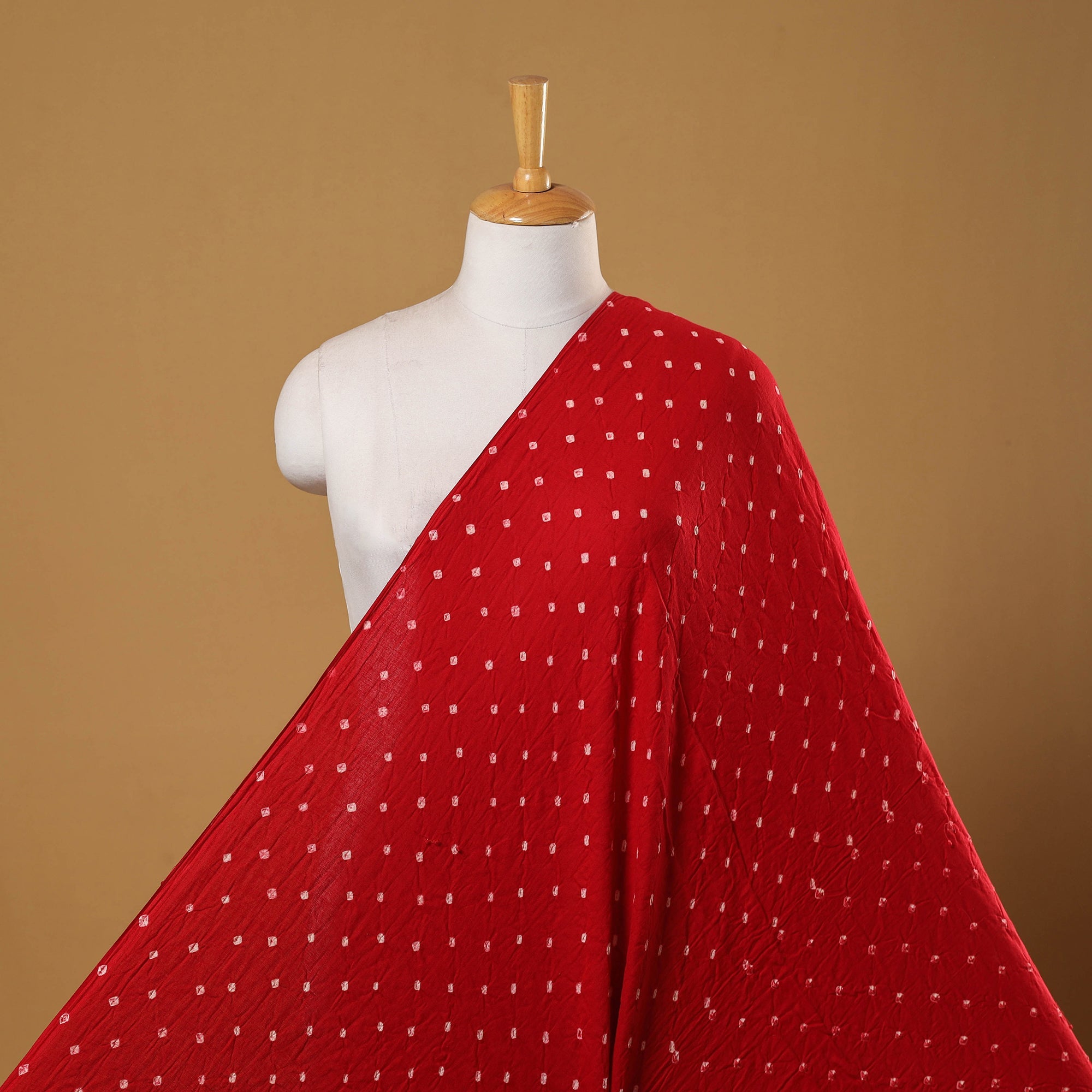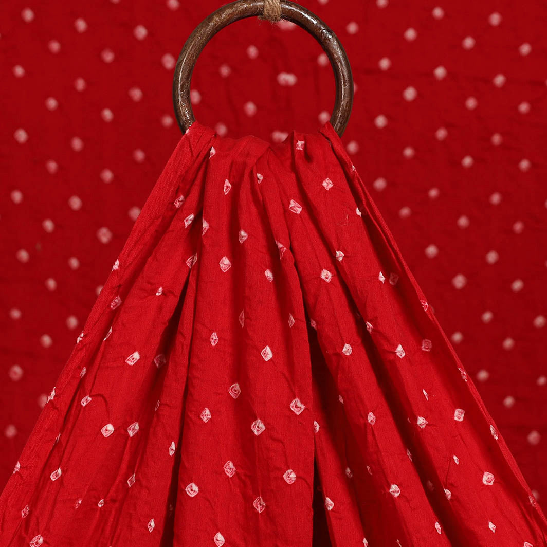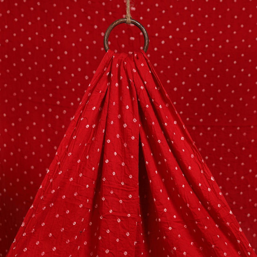 Bandhani cotton fabric is created using a thousands-of-years-old tie-dye technique practiced by skilled artisan Shabana Khatri in Kutch. This art involves tightly tying the fabric at multiple points with threads before dyeing, resulting in distinctive dotted Bandhej motifs. The fabric is ideal for creating sarees, dupattas, kurtas, blouses, stoles and more.