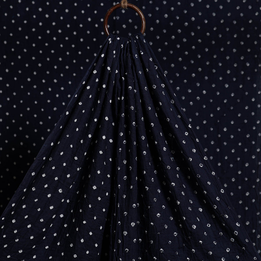 Blue bandhani pure cotton fabric features intricate patterns created using the traditional tie-and-dye technique practiced by skilled artisans of Kutch. This age-old art involves tightly tying the fabric with threads at multiple points before dyeing it, resulting in beautifully dotted bandhej motifs. Perfect for creating sarees, dupattas, kurtas, blouses, stoles, and more.