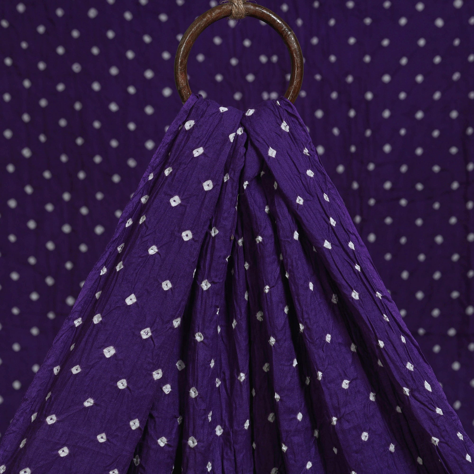 Purple bandhani cotton fabric created using the traditional tie-dye technique by artisans Shabana Khatri in Kutch. This art involves tightly tying the fabric with threads at multiple points before dyeing it, resulting in dotted bandhej motifs. Perfect for creating sarees, dupattas, kurtas, blouses, stoles and more.