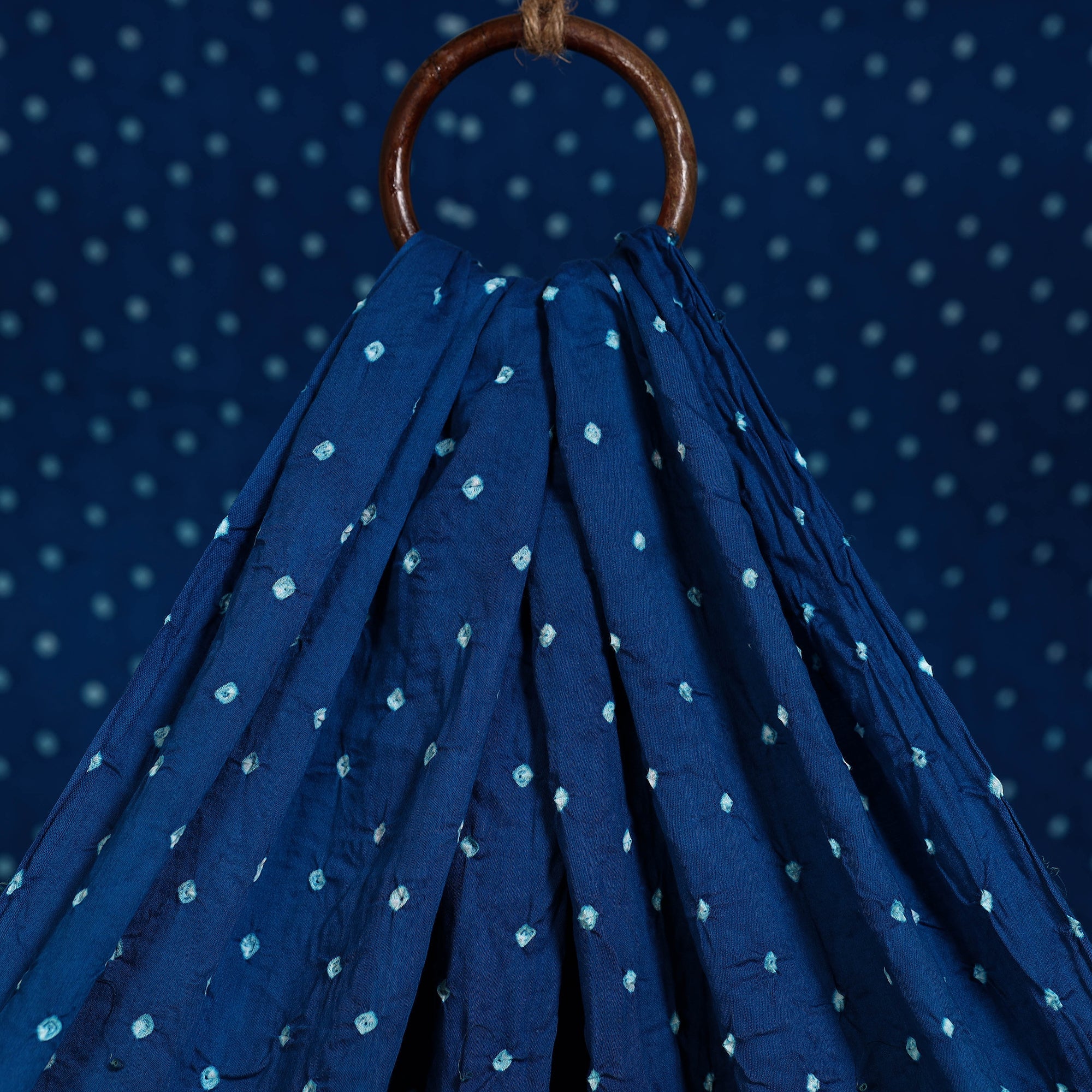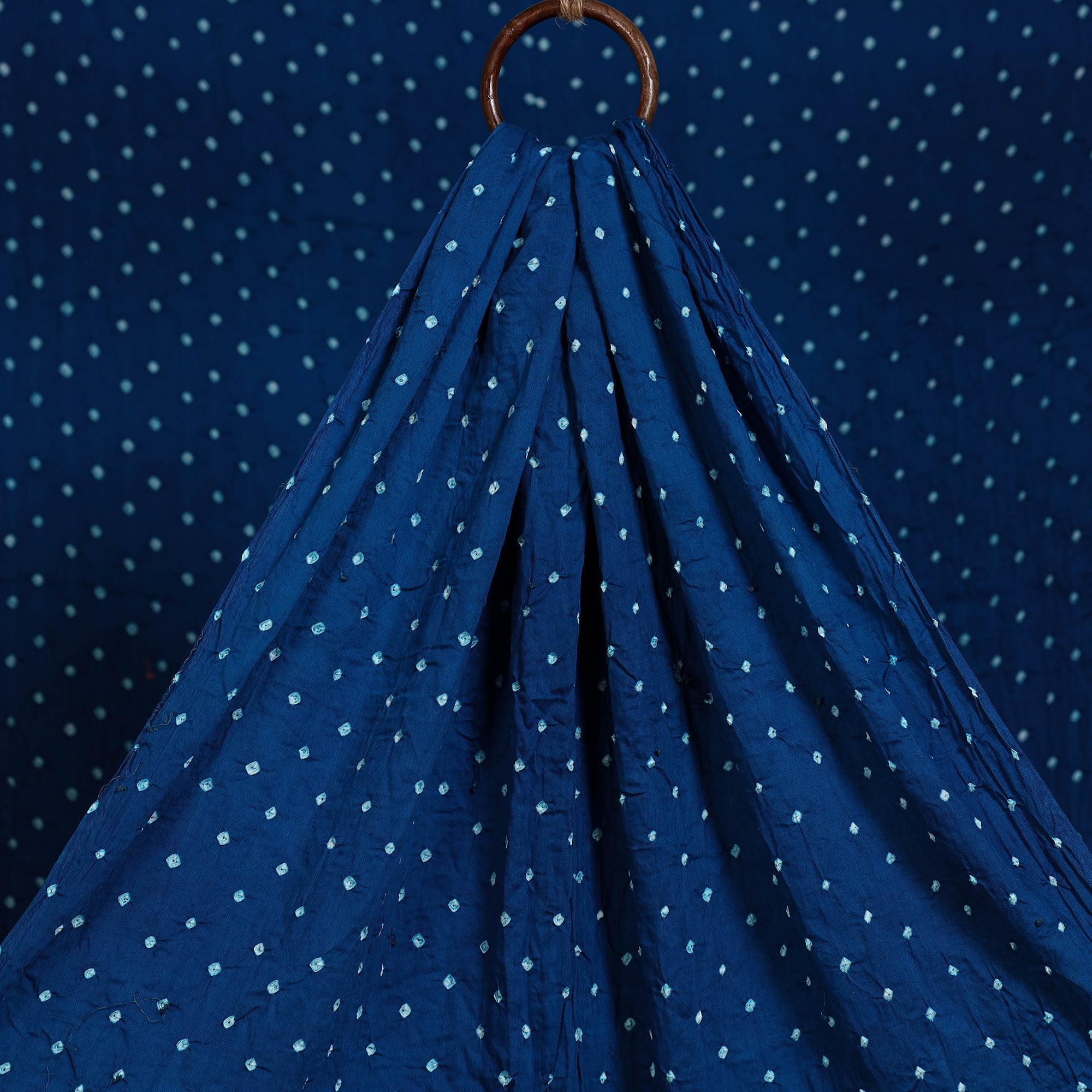 Blue bandhani pure cotton fabric features intricate patterns created using the traditional tie-and-dye technique practiced by skilled artisans of Kutch. This age-old art involves tightly tying the fabric with threads at multiple points before dyeing it, resulting in beautifully dotted bandhej motifs. Perfect for creating sarees, dupattas, kurtas, blouses, stoles, and more.