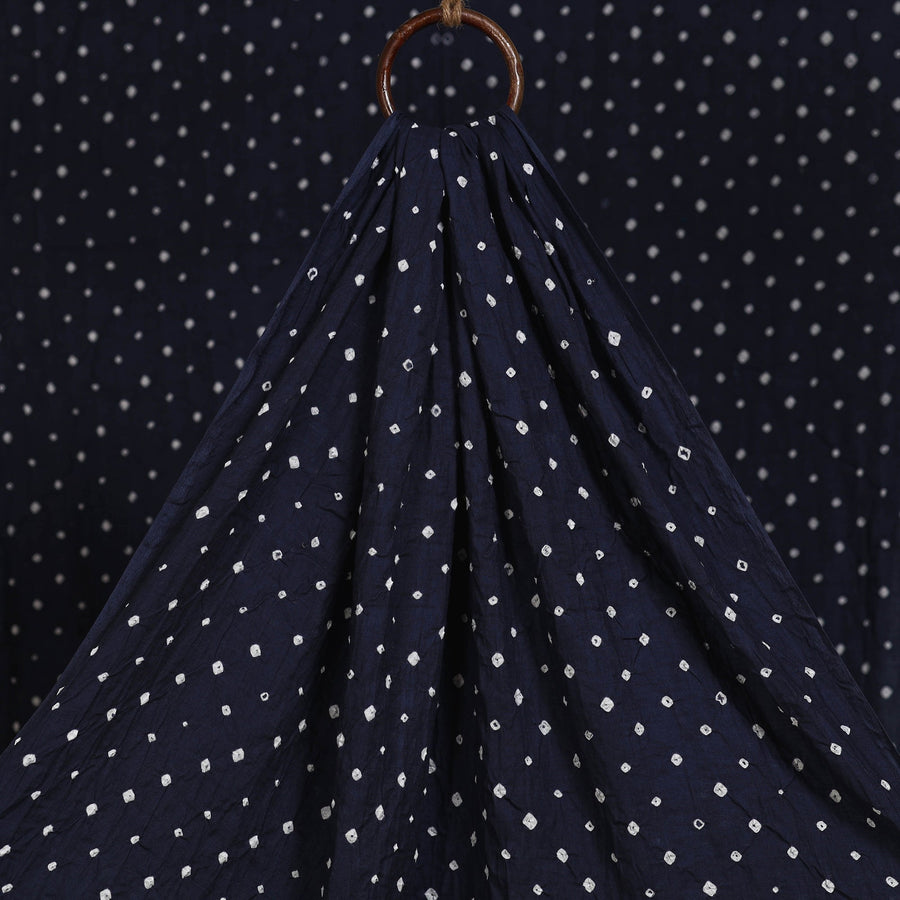 Blue bandhani pure cotton fabric features intricate patterns created using the traditional tie-and-dye technique practiced by skilled artisans of Kutch. This age-old art involves tightly tying the fabric with threads at multiple points before dyeing it, resulting in beautifully dotted bandhej motifs. Perfect for creating sarees, dupattas, kurtas, blouses, stoles, and more.