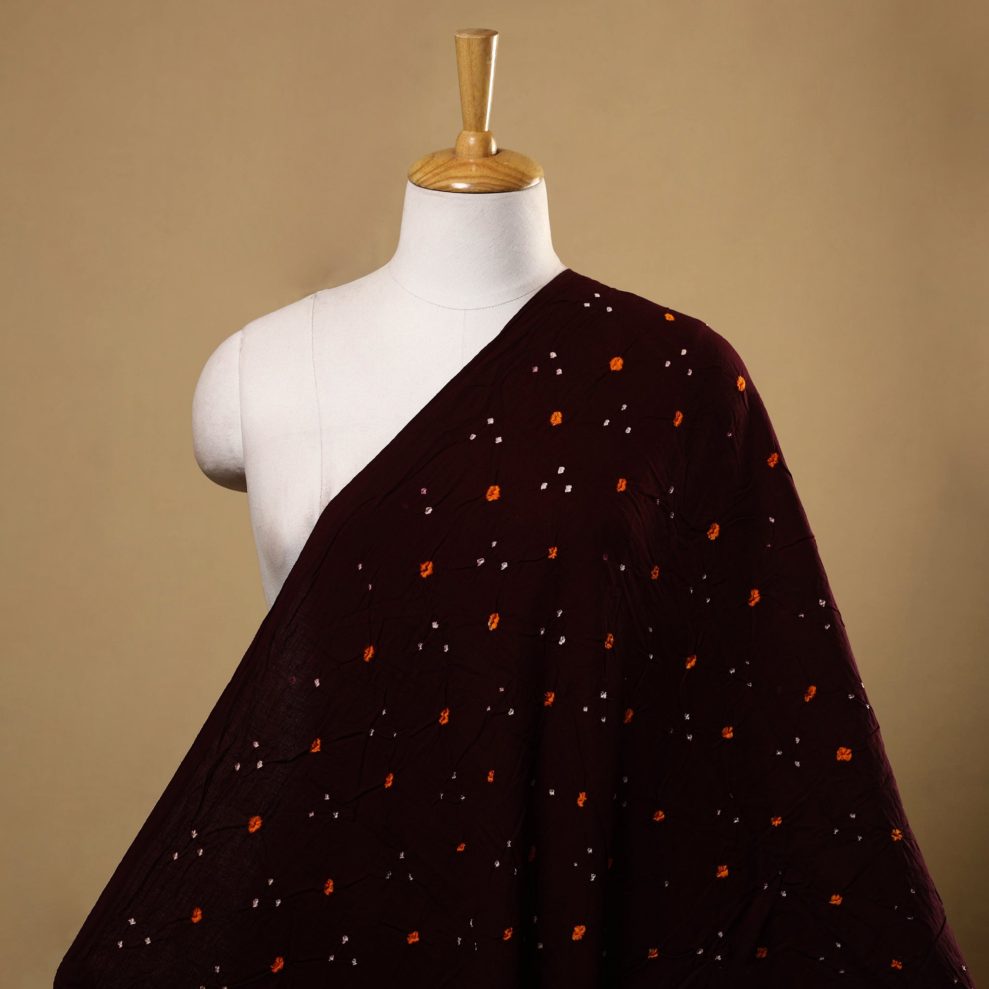 Embrace the colorful charm of Kutch with this stunning brown bandhani cotton fabric. Meticulously crafted using the classic tie-dye technique, every piece features detailed patterns that echo a rich cultural legacy. Soft, breathable, and versatile, it’s perfect for creating modern outfits with a traditional touch.
