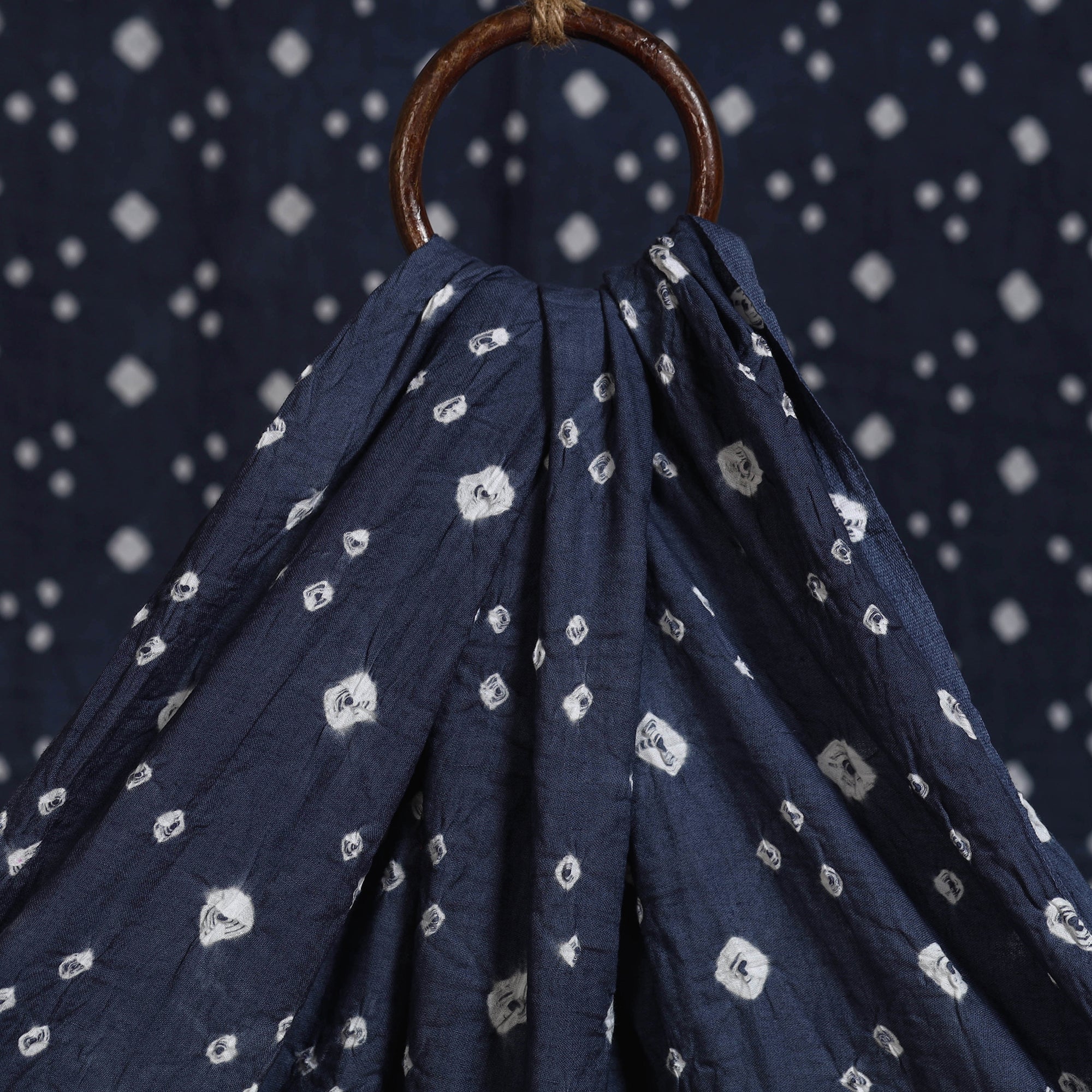 This blue cotton bandhani fabric from Kutch is crafted using traditional tie-dye techniques. Each piece features delicate, hand-created patterns. Lightweight and breathable, the fabric feels comfortable in every season. Ideal for stitching kurtas, dresses, or dupattas, it blends heritage charm with versatile style for both everyday and festive wear.