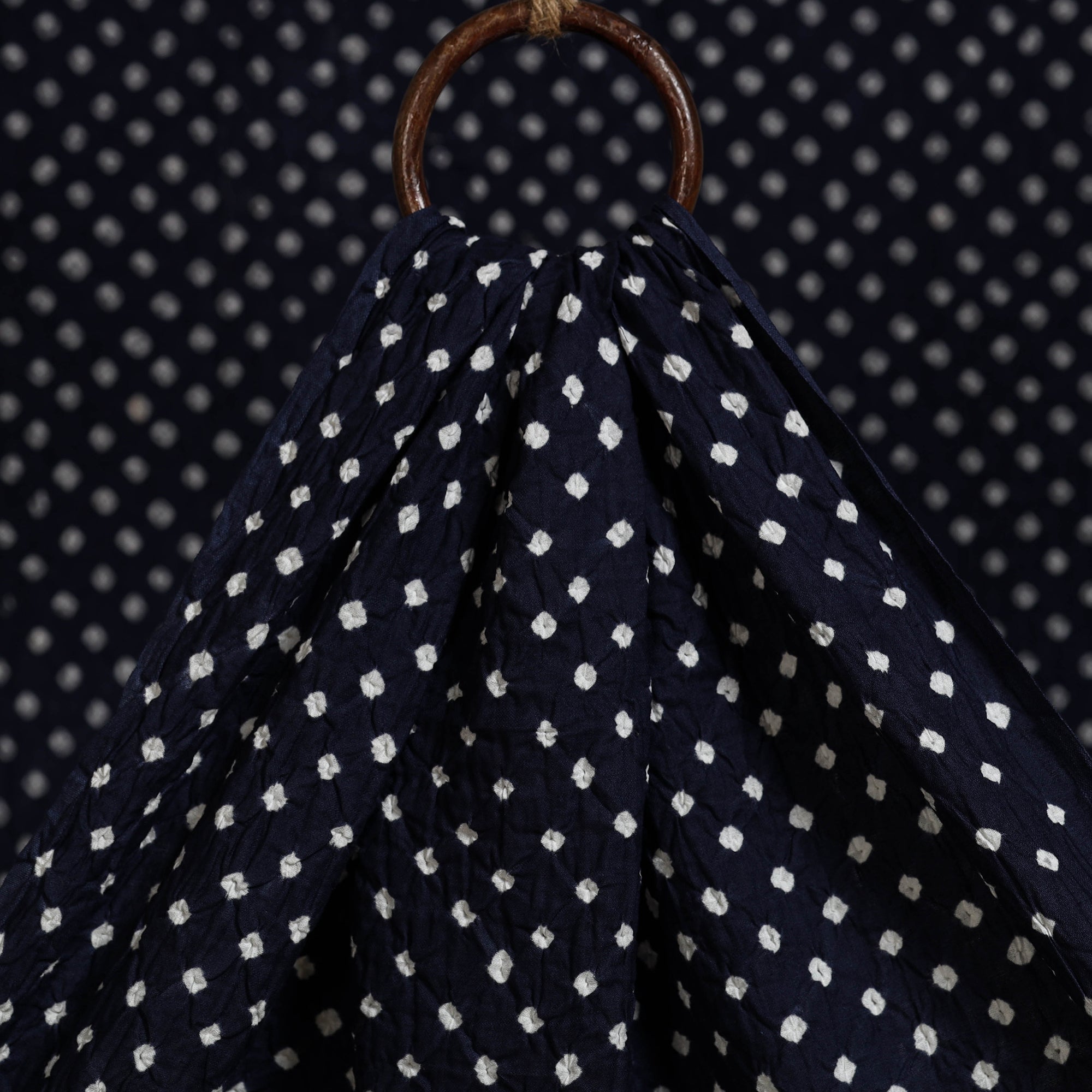 Embrace the charm of Kutch with this blue bandhani cotton fabric. Carefully hand-tied and dyed using age-old bandhej techniques, every piece features detailed patterns that echo a rich cultural legacy. Soft, breathable, and versatile, it’s perfect for creating modern outfits with a traditional touch.