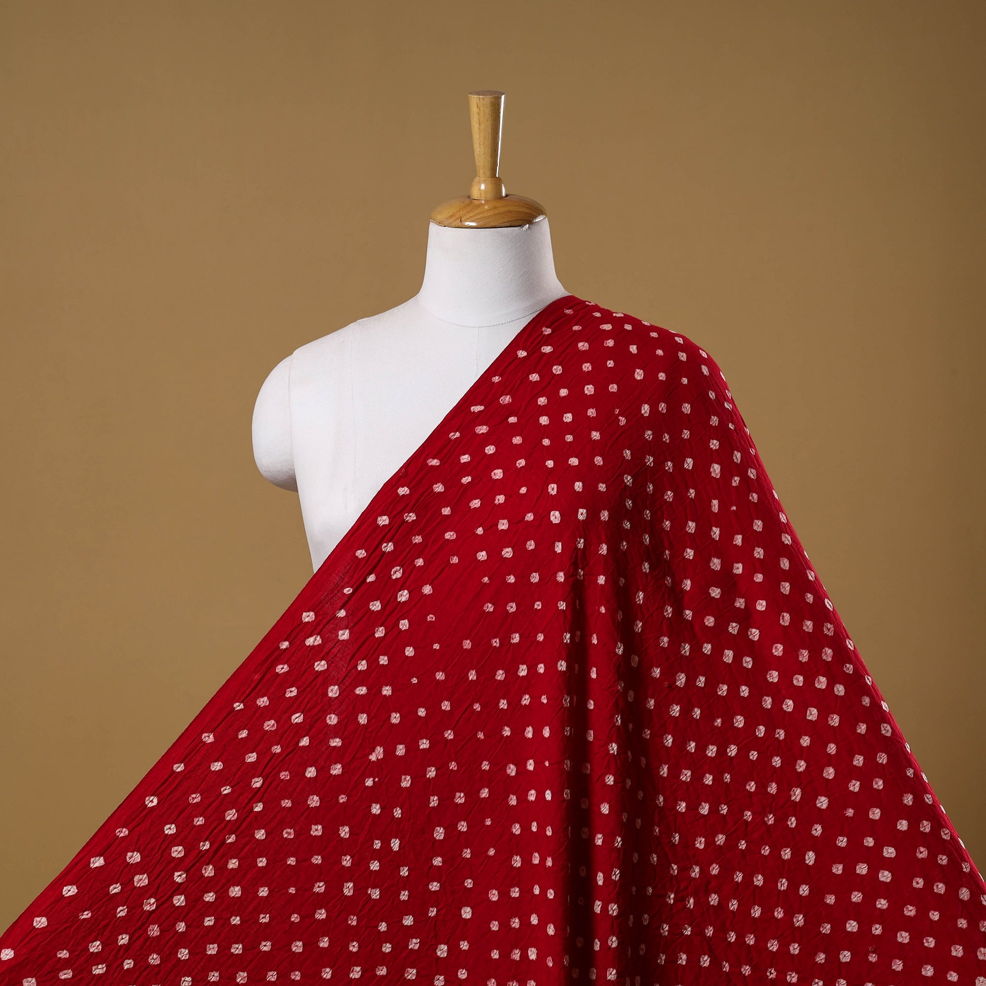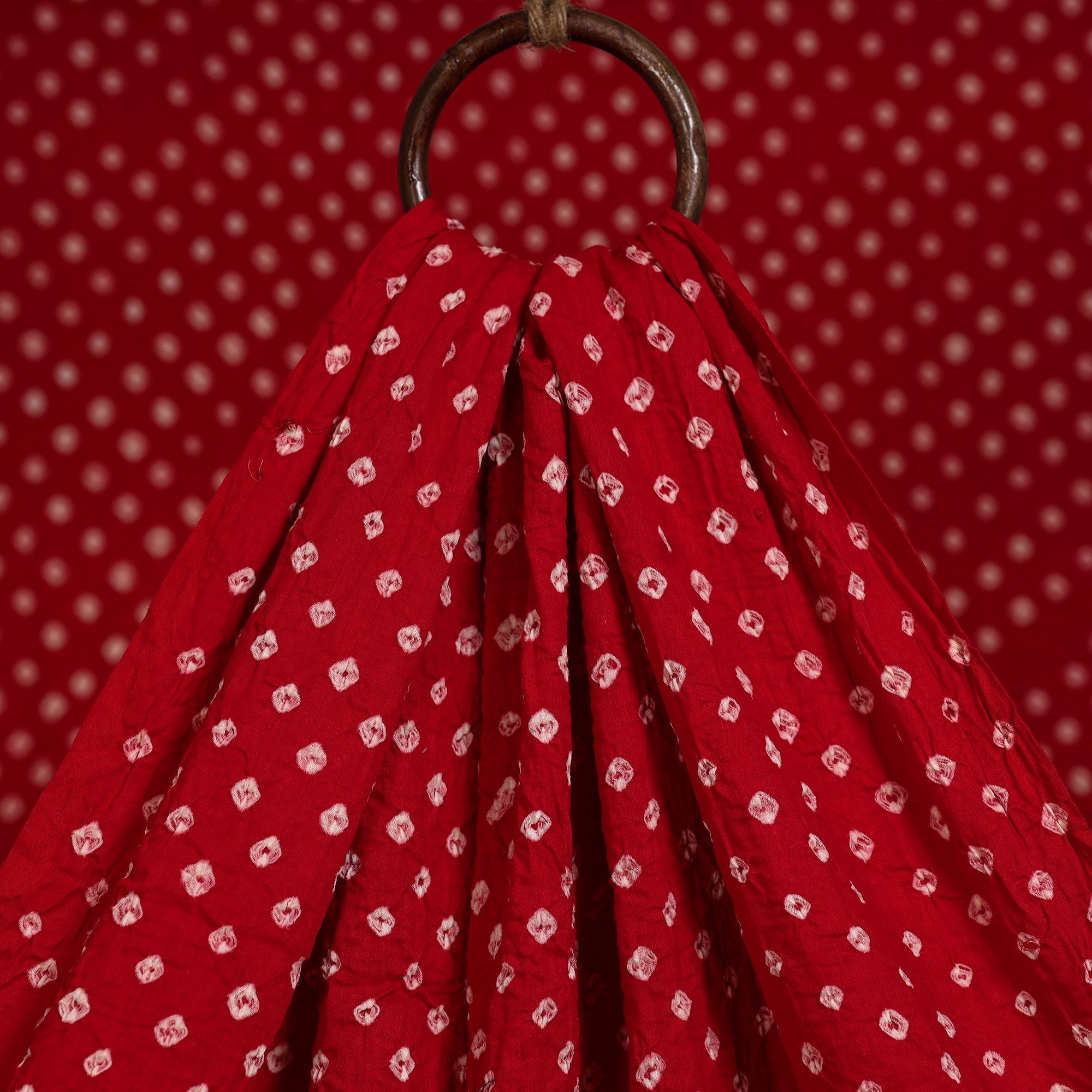 Red bandhani cotton fabric from Kutch is made using the traditional tie-dye technique. Each pattern is hand-tied and dyed to create beautiful designs. Soft and breathable, this fabric is great for clothing like kurtas, dresses, or dupattas, and can also be used for home decor to add a colorful, cultural touch.