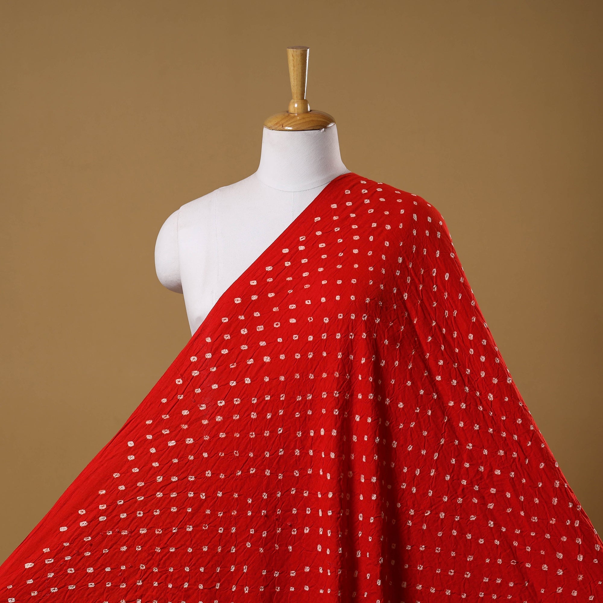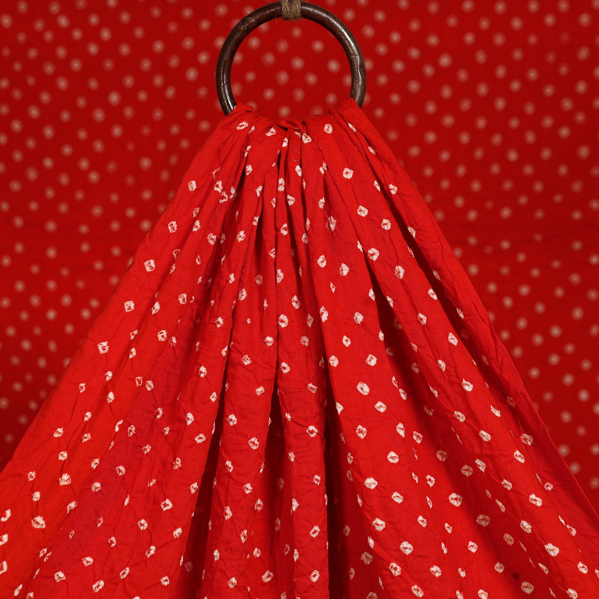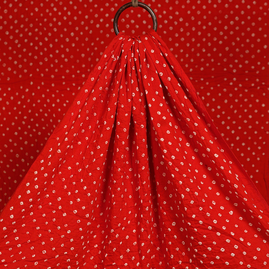 Red bandhani cotton fabric from Kutch is made using the traditional tie-dye technique. Each pattern is hand-tied and dyed to create beautiful designs. Soft and breathable, this fabric is great for clothing like kurtas, dresses, or dupattas, and can also be used for home decor to add a colorful, cultural touch.