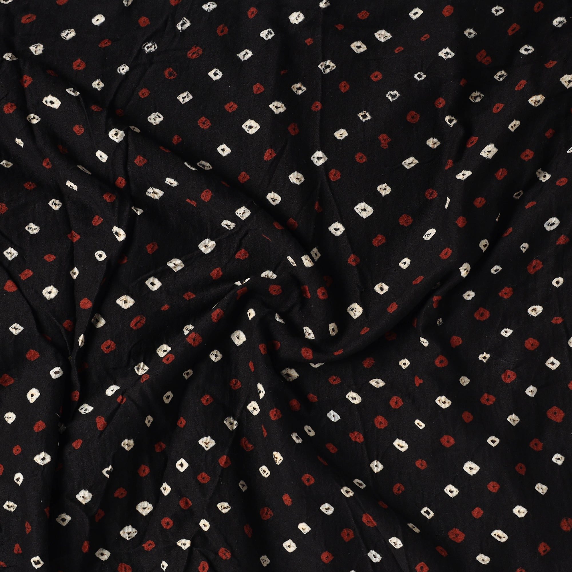 | Material | This Kutch tie-dye cotton bandhani precut fabric features a majestic bandhani pattern, tie-dyed using the traditional technique practiced by the artisans of Kutch. The art of bandhani is a highly skilled process. Perfect for crafting elegant blouses, bags, decorative items, and more, this exquisite textile symbolizes timeless sophistication, adding a touch of elegance to any wardrobe. |