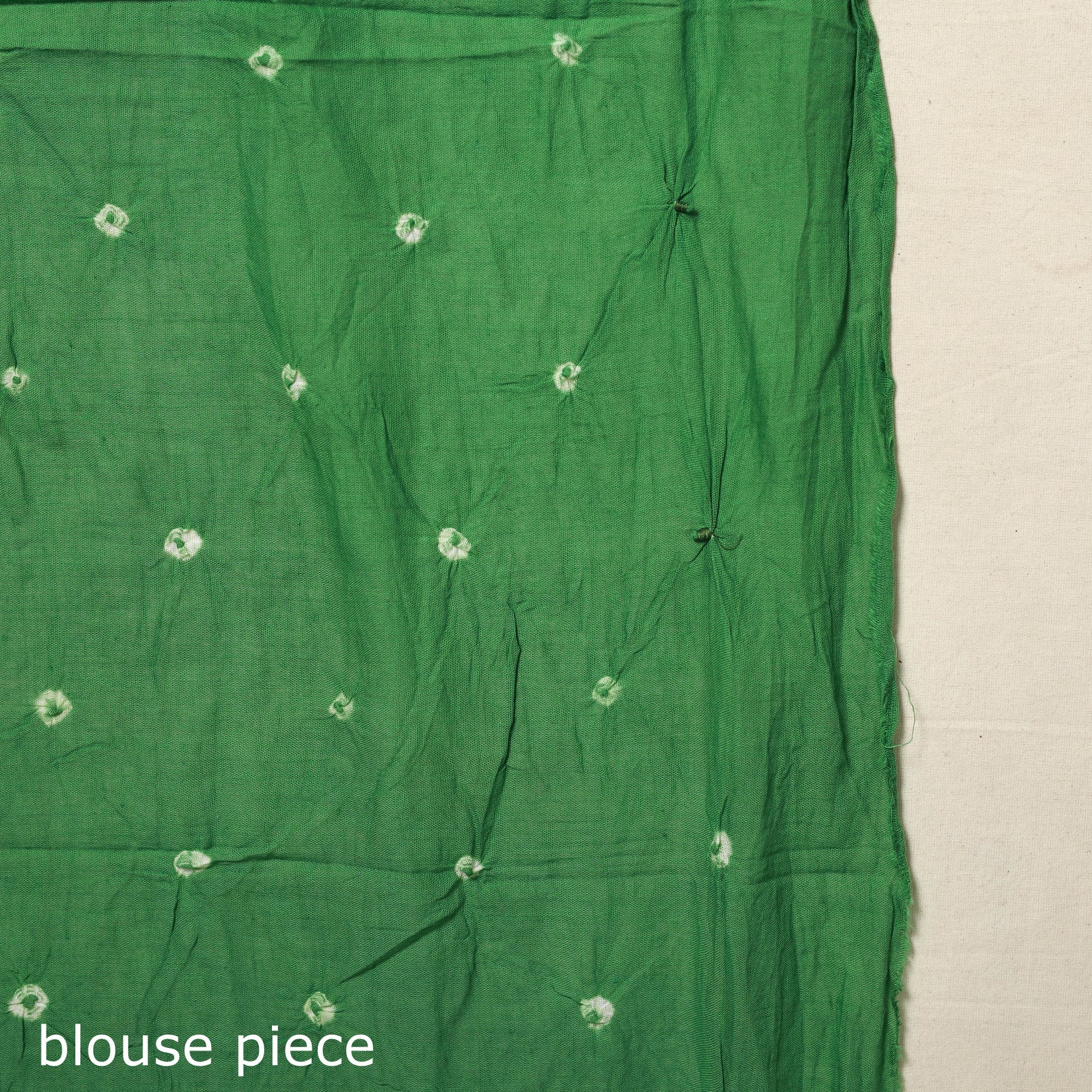 This green cotton bandhani saree showcases the beauty of traditional tie-dye from Kutch. Each piece is created through a meticulous tying and dyeing process that results in unique, intricate patterns. Perfect for festive celebrations, cultural gatherings, or adding a touch of elegance to your everyday wardrobe.