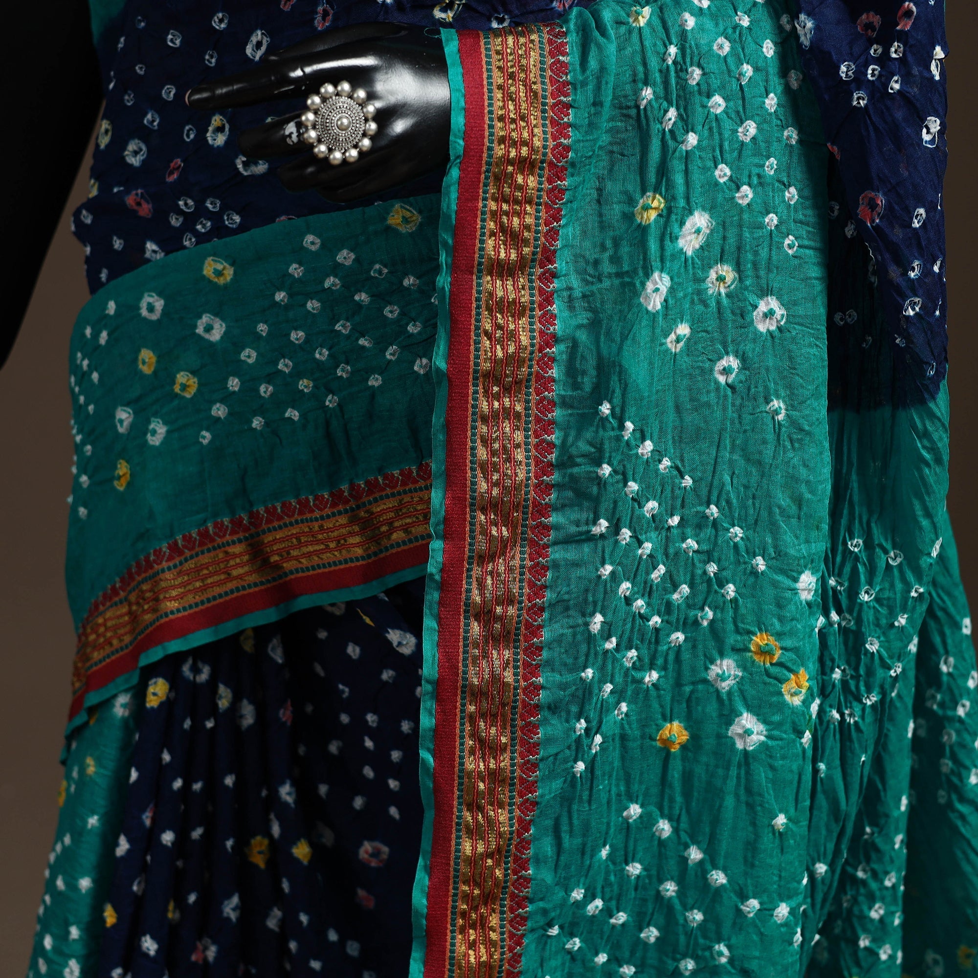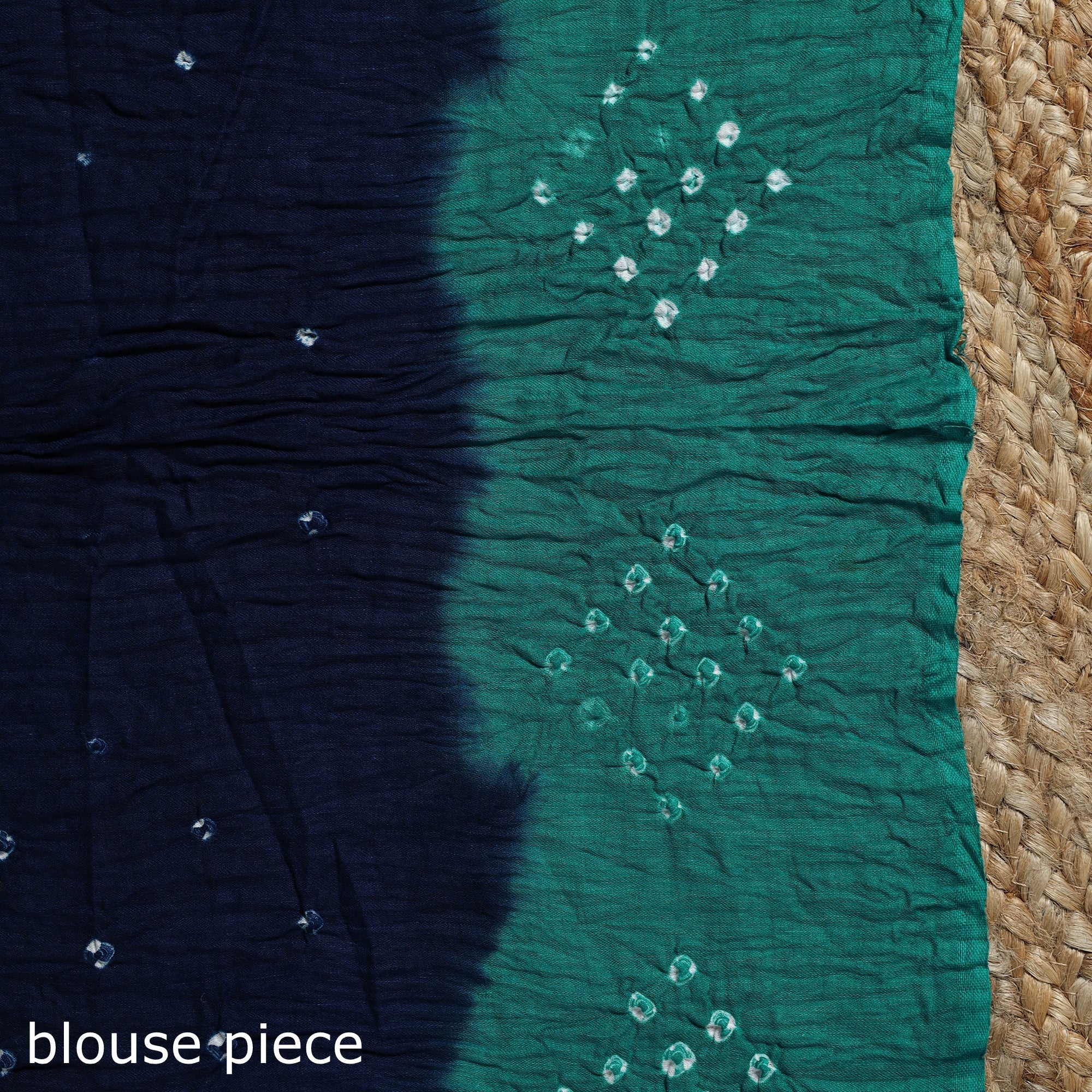 Green bandhani tie-dye cotton saree with blouse piece and border, crafted by artisans from Kutch using the traditional Bandhej method. In this age-old technique, the fabric is tightly tied at tiny points and then dyed to create natural dotted patterns. Each saree is unique because every knot is tied by hand, a skill practiced for generations. Lightweight, vibrant and easy to drape, this saree works beautifully for festive wear as well as everyday outings.