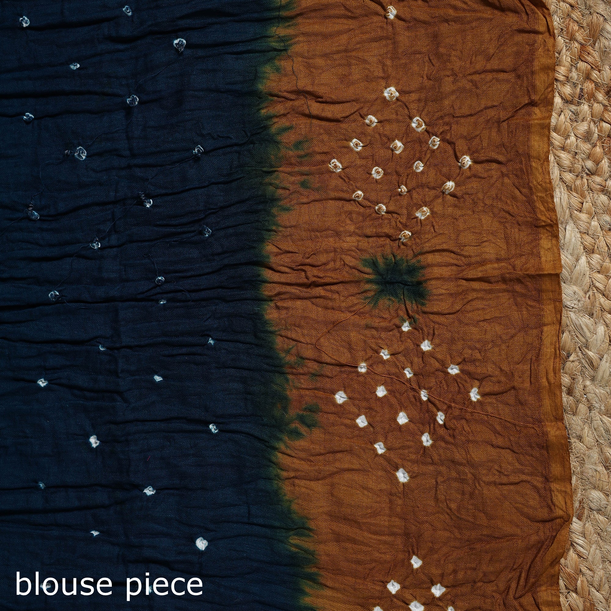 Brown bandhani tie-dye cotton saree with blouse piece and border, crafted by artisans from Kutch using the traditional Bandhej method. In this age-old technique, the fabric is tightly tied at tiny points and then dyed to create natural dotted patterns. Each saree is unique because every knot is tied by hand, a skill practiced for generations. Lightweight, vibrant and easy to drape, this saree works beautifully for festive wear as well as everyday outings.