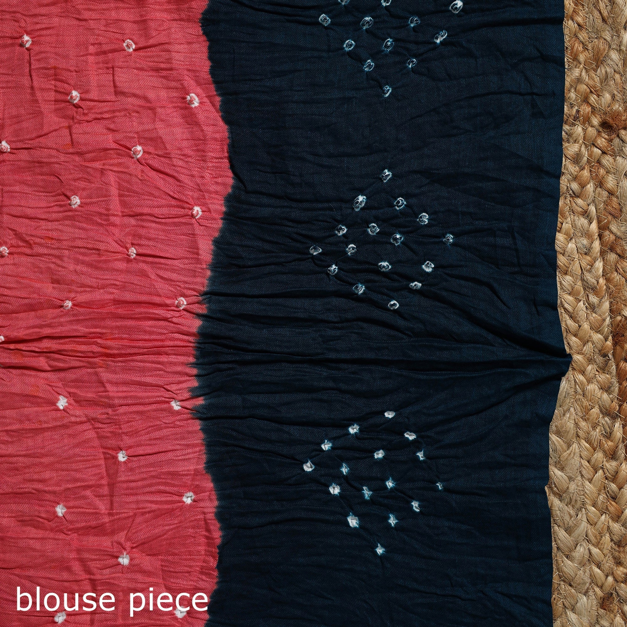 Pink bandhani tie-dye cotton saree with blouse piece and border, crafted by artisans from Kutch using the traditional Bandhej method. In this age-old technique, the fabric is tightly tied at tiny points and then dyed to create natural dotted patterns. Each saree is unique because every knot is tied by hand, a skill practiced for generations. Lightweight, vibrant and easy to drape, this saree works beautifully for festive wear as well as everyday outings.