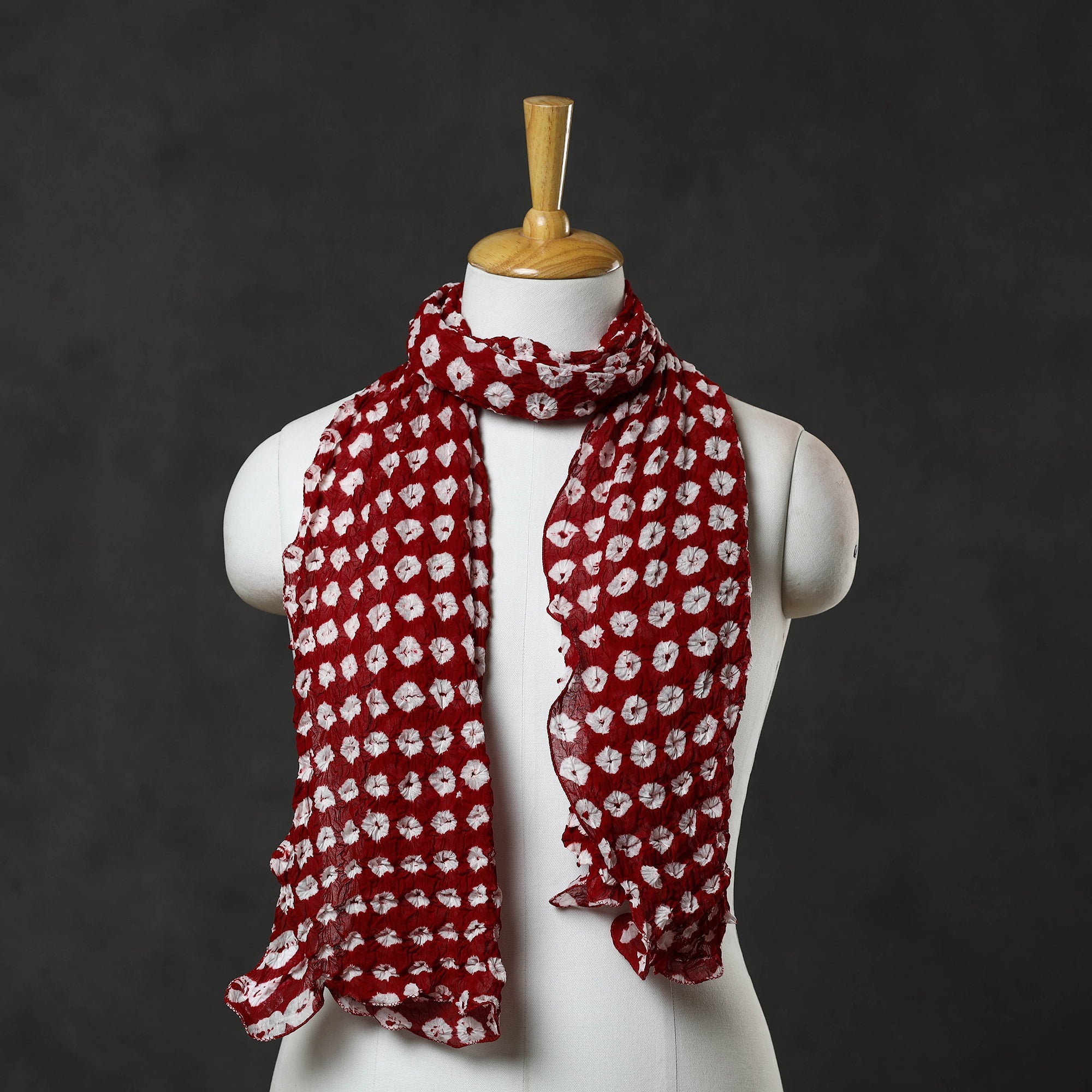 Celebrate the vibrant artistry of maroon kutch tie-dye cotton bandhani stole. Created using the traditional tie-dye technique practiced by skilled artisans in Kutch, resulting in intricate patterns and vibrant colors. this stole is perfect for any occasion, Each piece is meticulously dyed by tying the fabric tightly with thread at multiple points, resulting in a beautifully intricate design.