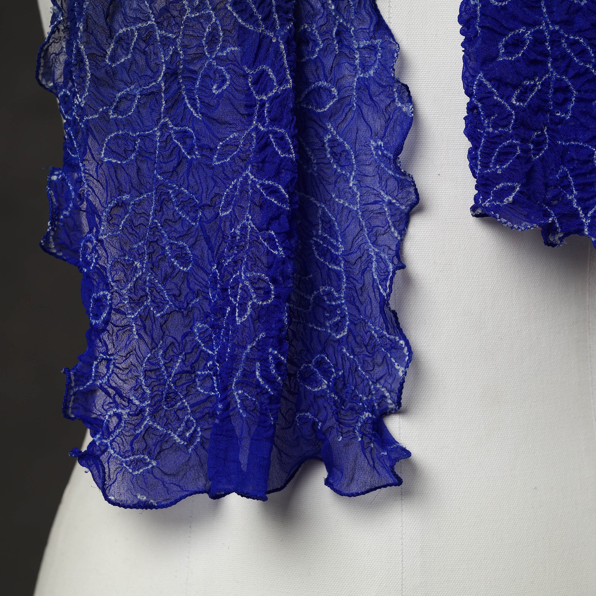 Kutch tie & dye blue georgette bandhani stole. Created by skilled artisans in Kutch, each stole is hand-tied and dyed to produce its unique, detailed patterns. Soft, lightweight, and versatile, this stole brings the beauty of Kutch’s culture to your wardrobe.