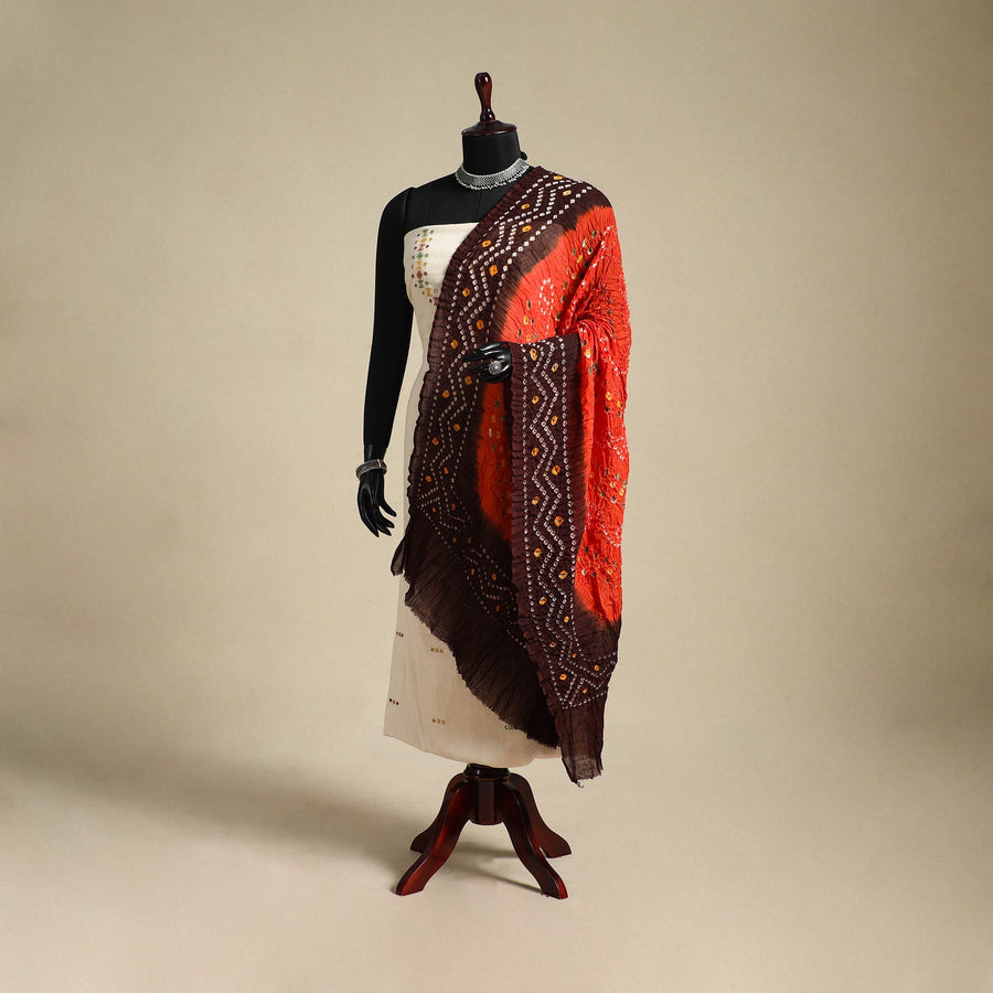 • Orange - kutch tie-dye mul cotton bandhani dupatta 88