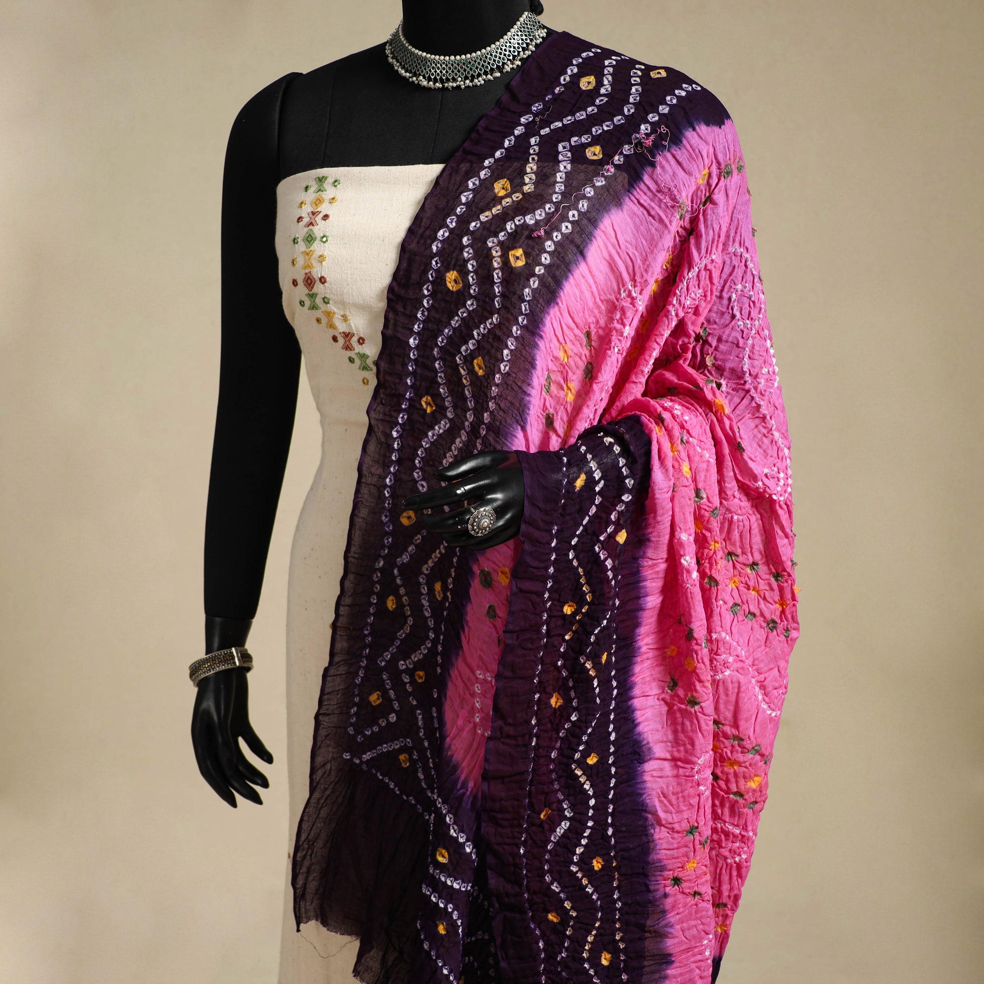 • Pink - kutch tie-dye mul cotton bandhani dupatta 90