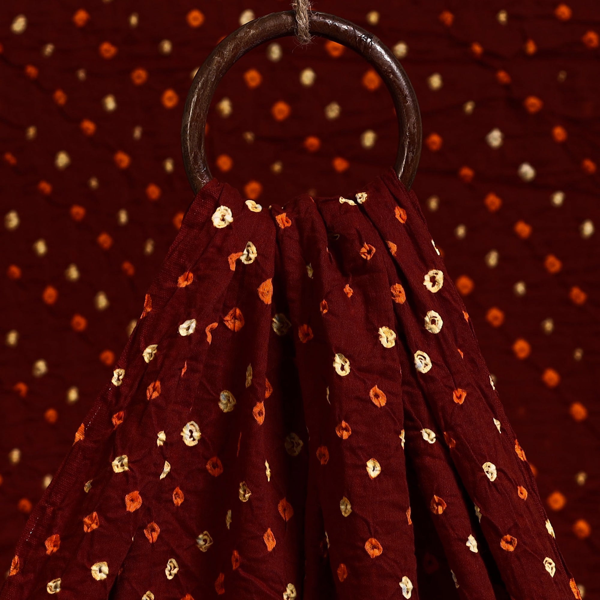 Discover the charm of maroon Kutch’s tie-dye mul cotton bandhani fabric, handcrafted by expert artisans. Featuring the traditional bandhani technique, it presents detailed hand-tied patterns that echo India’s rich textile legacy. Perfect for sarees, dupattas, kurtas, or creative home decor accents.