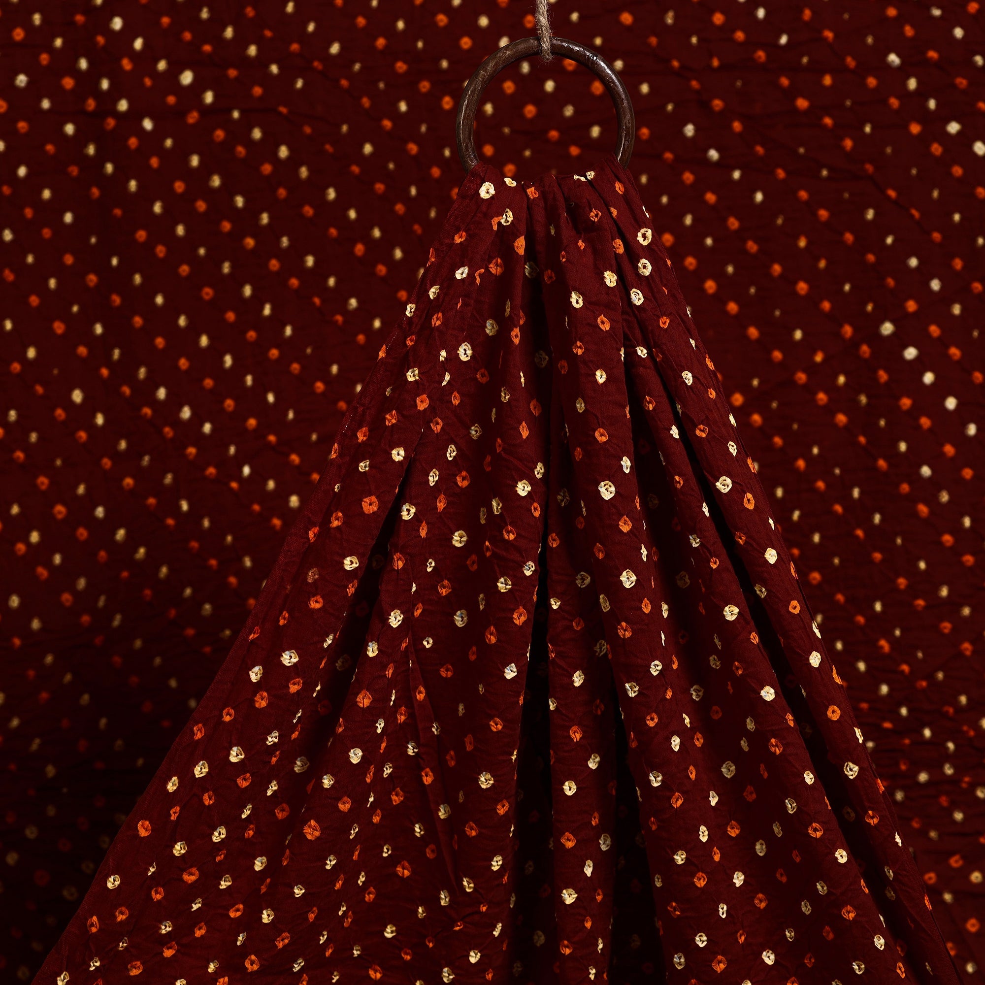 Discover the charm of maroon Kutch’s tie-dye mul cotton bandhani fabric, handcrafted by expert artisans. Featuring the traditional bandhani technique, it presents detailed hand-tied patterns that echo India’s rich textile legacy. Perfect for sarees, dupattas, kurtas, or creative home decor accents.
