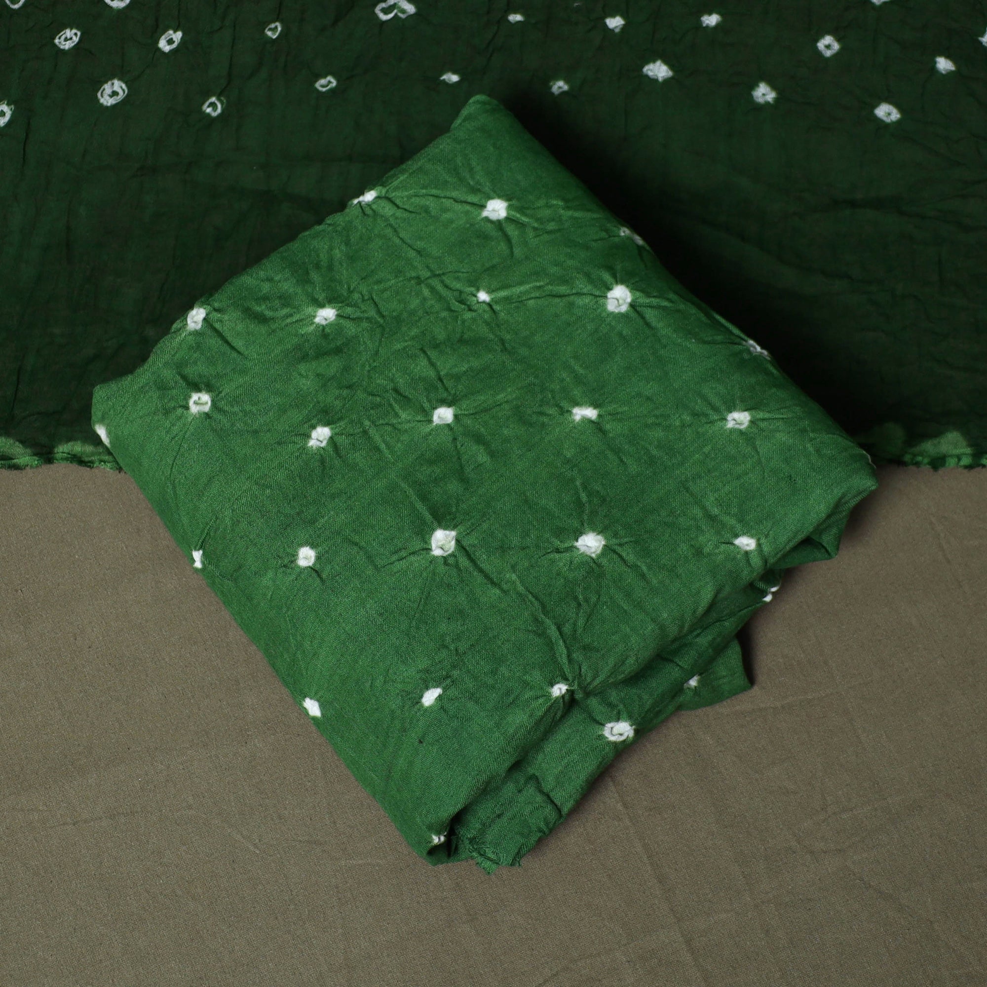 • Green - Kutch Tie-Dye Satin Cotton Bandhani 3pc Unstitched Dress Material 10