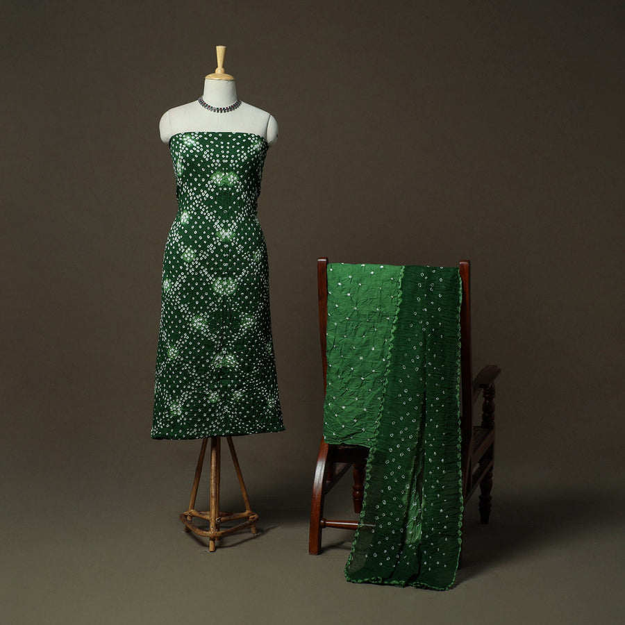 Green - Kutch Tie-Dye Satin Cotton Bandhani 3pc Unstitched Dress Material 10
