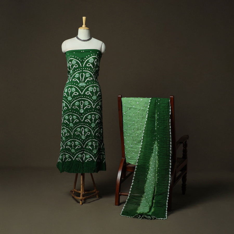 Green - Kutch Tie-Dye Satin Cotton Bandhani 3pc Unstitched Dress Material 11