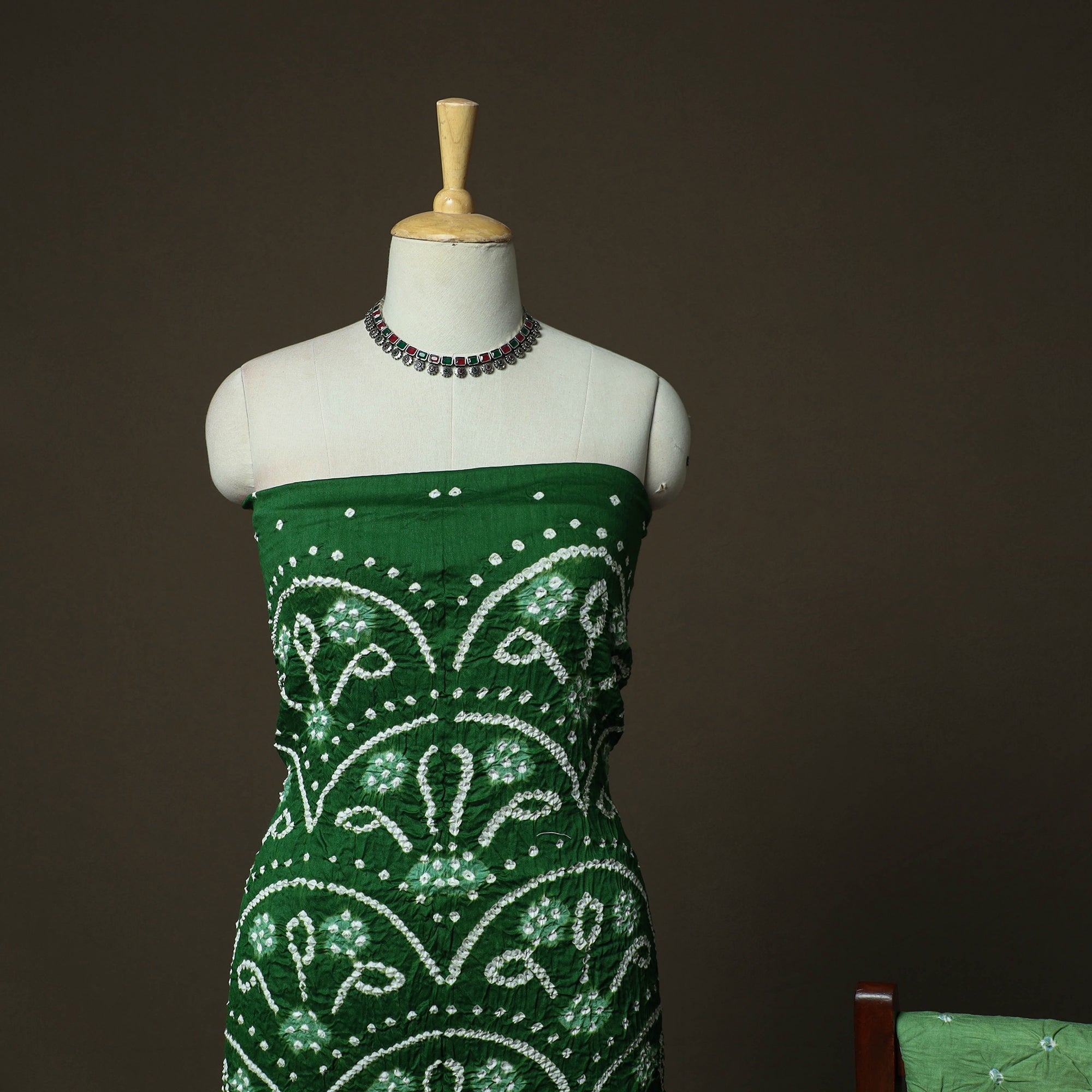 • Green - Kutch Tie-Dye Satin Cotton Bandhani 3pc Unstitched Dress Material 11
