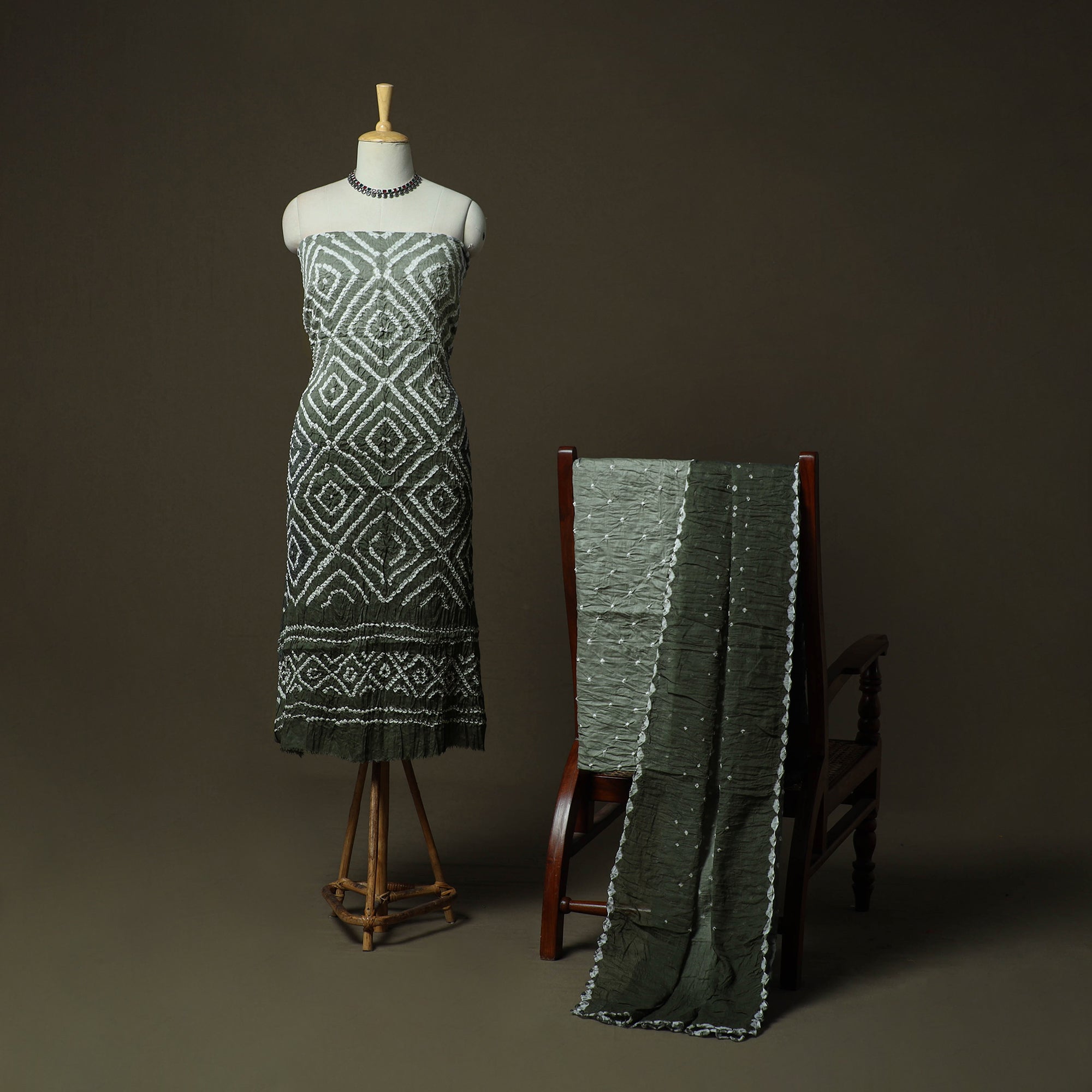• Green - Kutch Tie-Dye Satin Cotton Bandhani 3pc Unstitched Dress Material 16