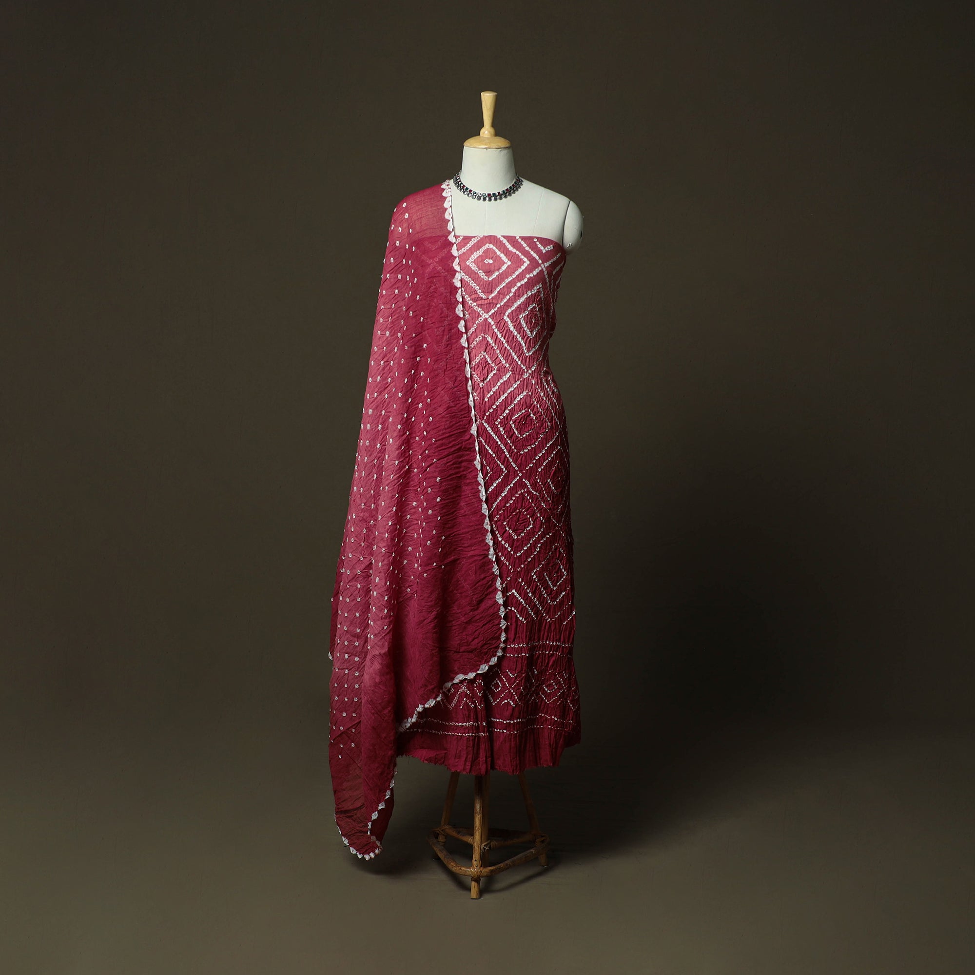 • Kutch tie-dye satin cotton bandhani 3pc unstitched dress