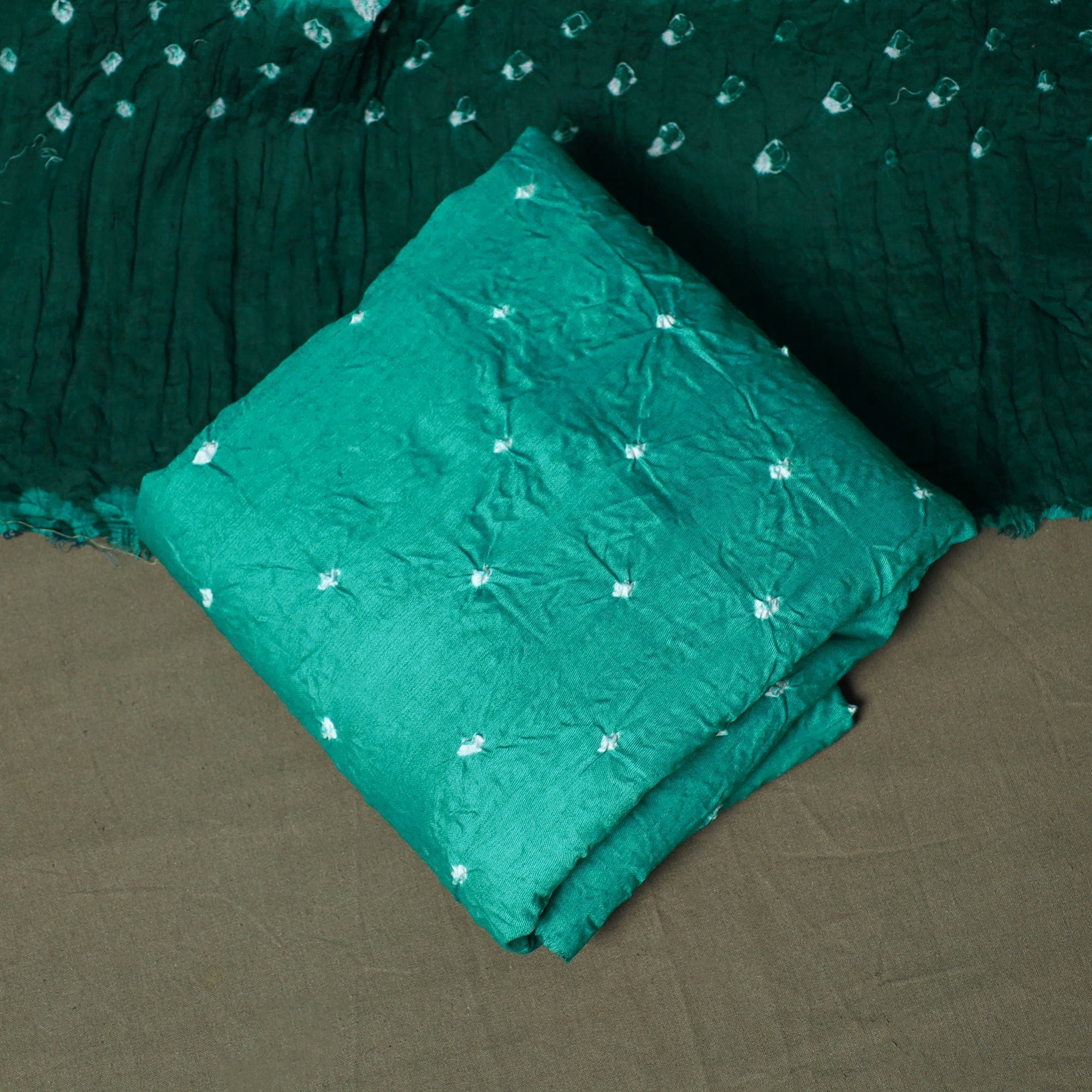 • Green - Kutch Tie-Dye Satin Cotton Bandhani 3pc Unstitched Dress Material 19