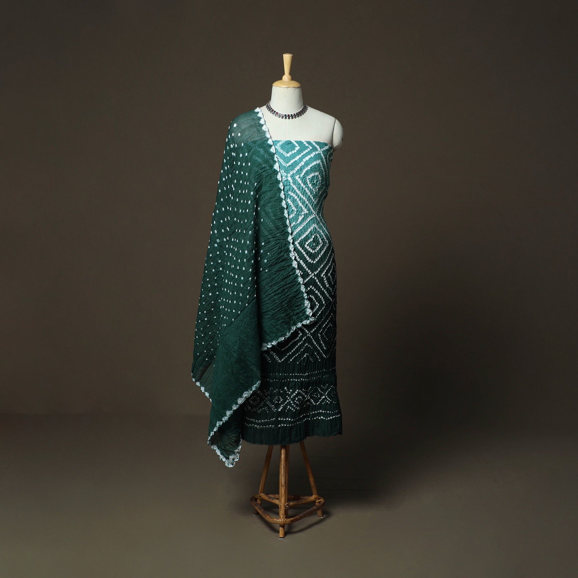 Green - Kutch Tie-Dye Satin Cotton Bandhani 3pc Unstitched Dress Material 30