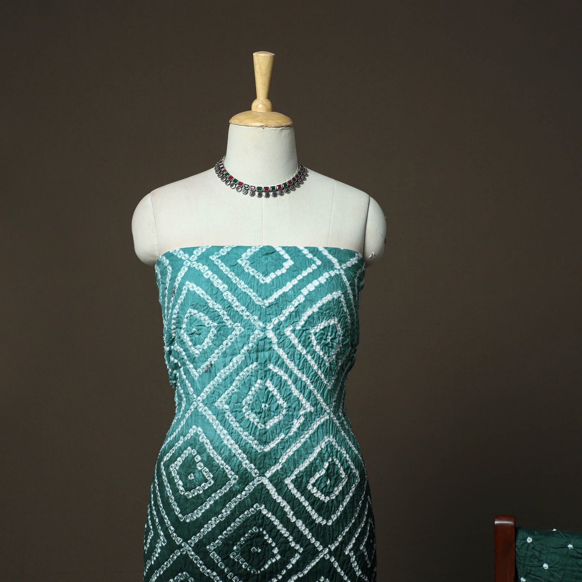 • Green - Kutch Tie-Dye Satin Cotton Bandhani 3pc Unstitched Dress Material 30