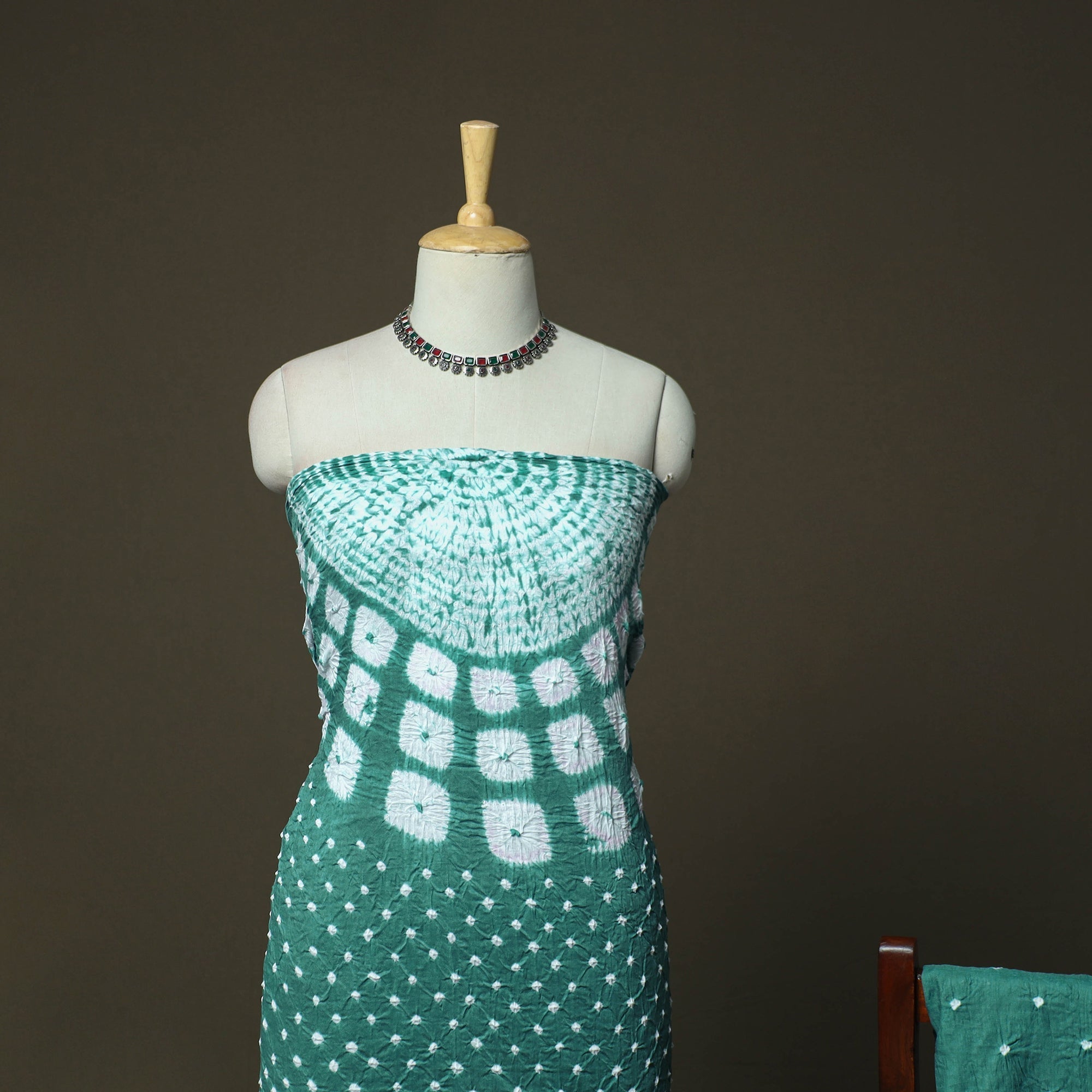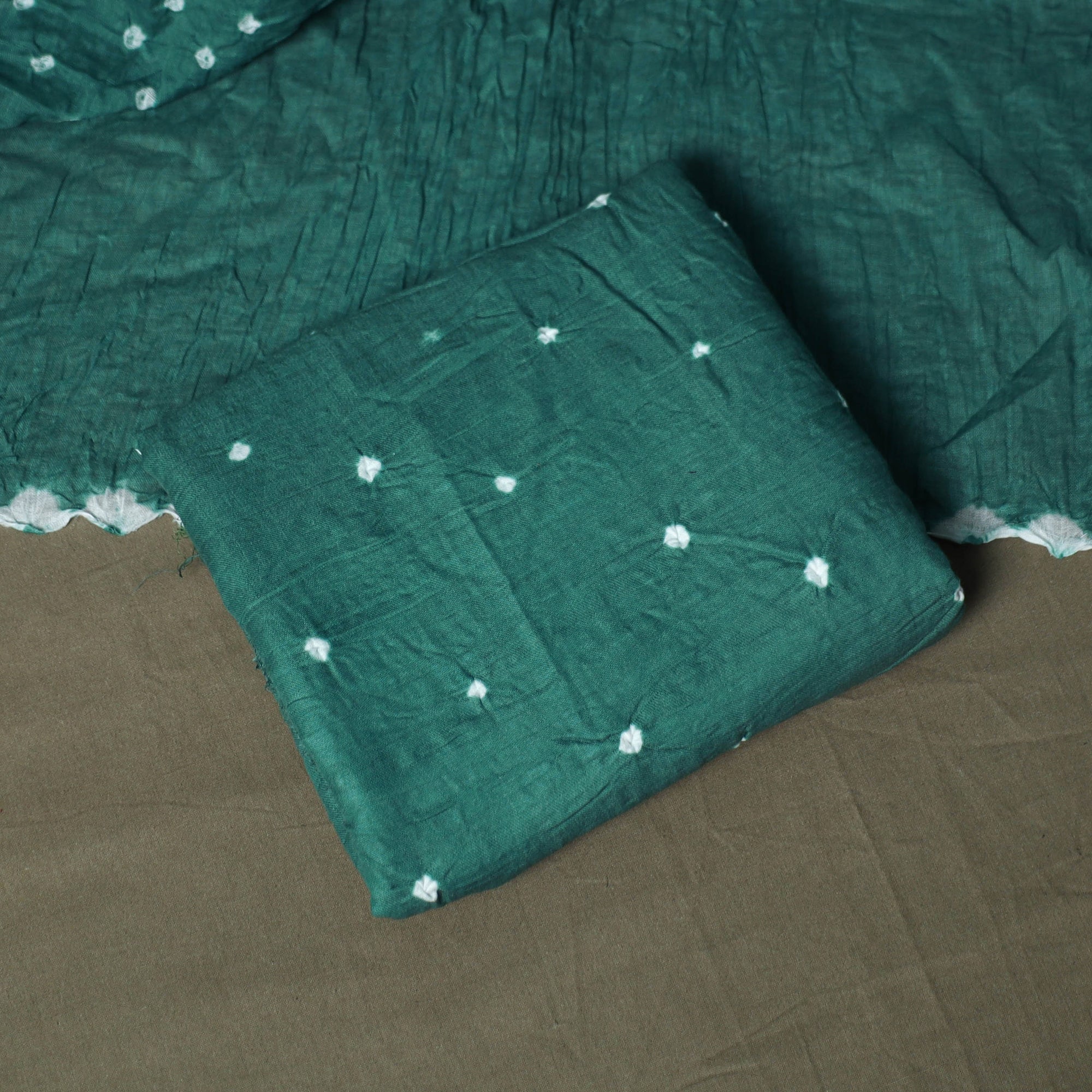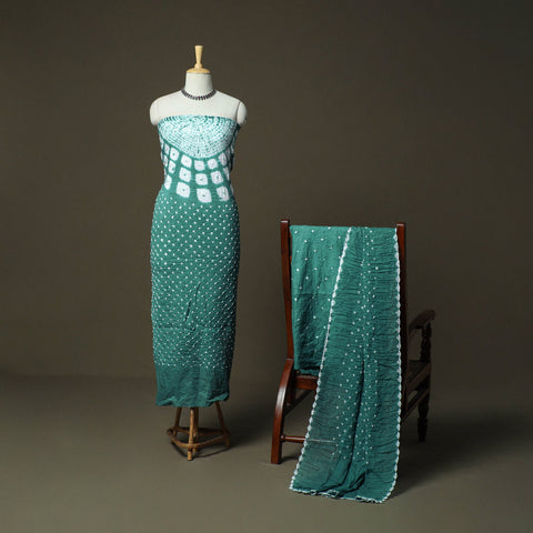 • Green - Kutch Tie-Dye Satin Cotton Bandhani 3pc Unstitched Dress Material 31