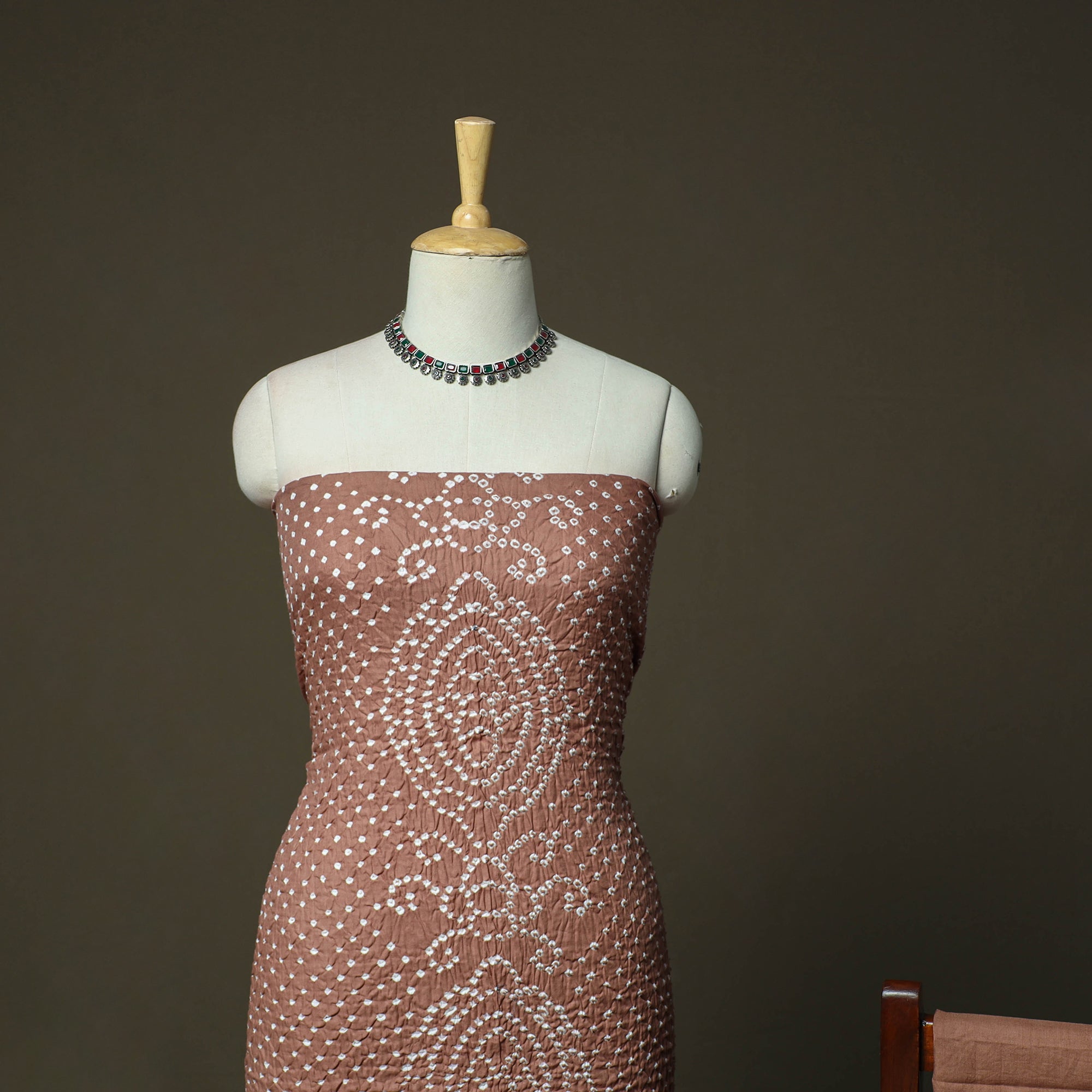 • Brown - Kutch Tie-Dye Satin Cotton Bandhani 3pc Unstitched Dress Material 43