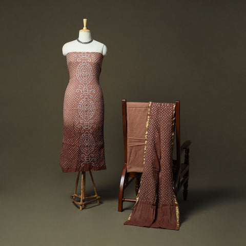 Brown - Kutch Tie-Dye Satin Cotton Bandhani 3pc Unstitched Dress Material 43