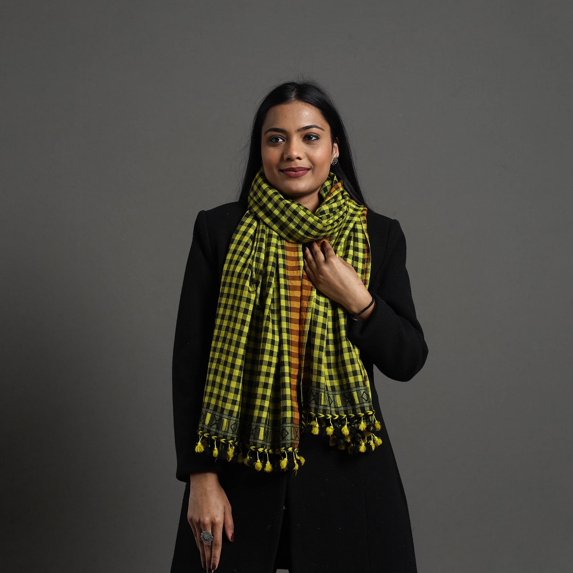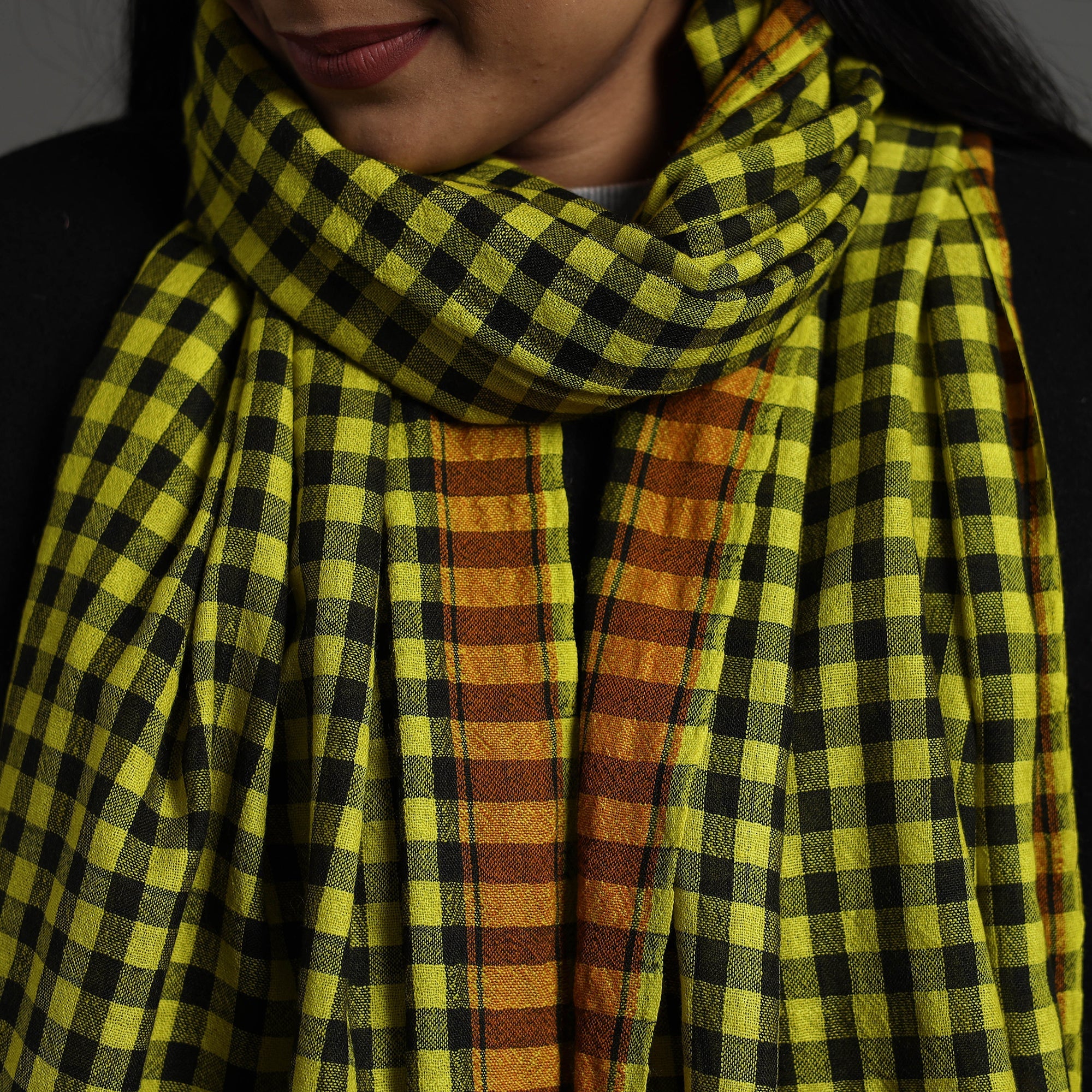 | Material | This green kutch weaving handwoven bharwadi checks woollen stole is crafted by skilled artisans from the Kutch region of Gujarat. Featuring traditional Kutchi motifs, it combines intricate craftsmanship with soft texture, providing warmth and elegance. |