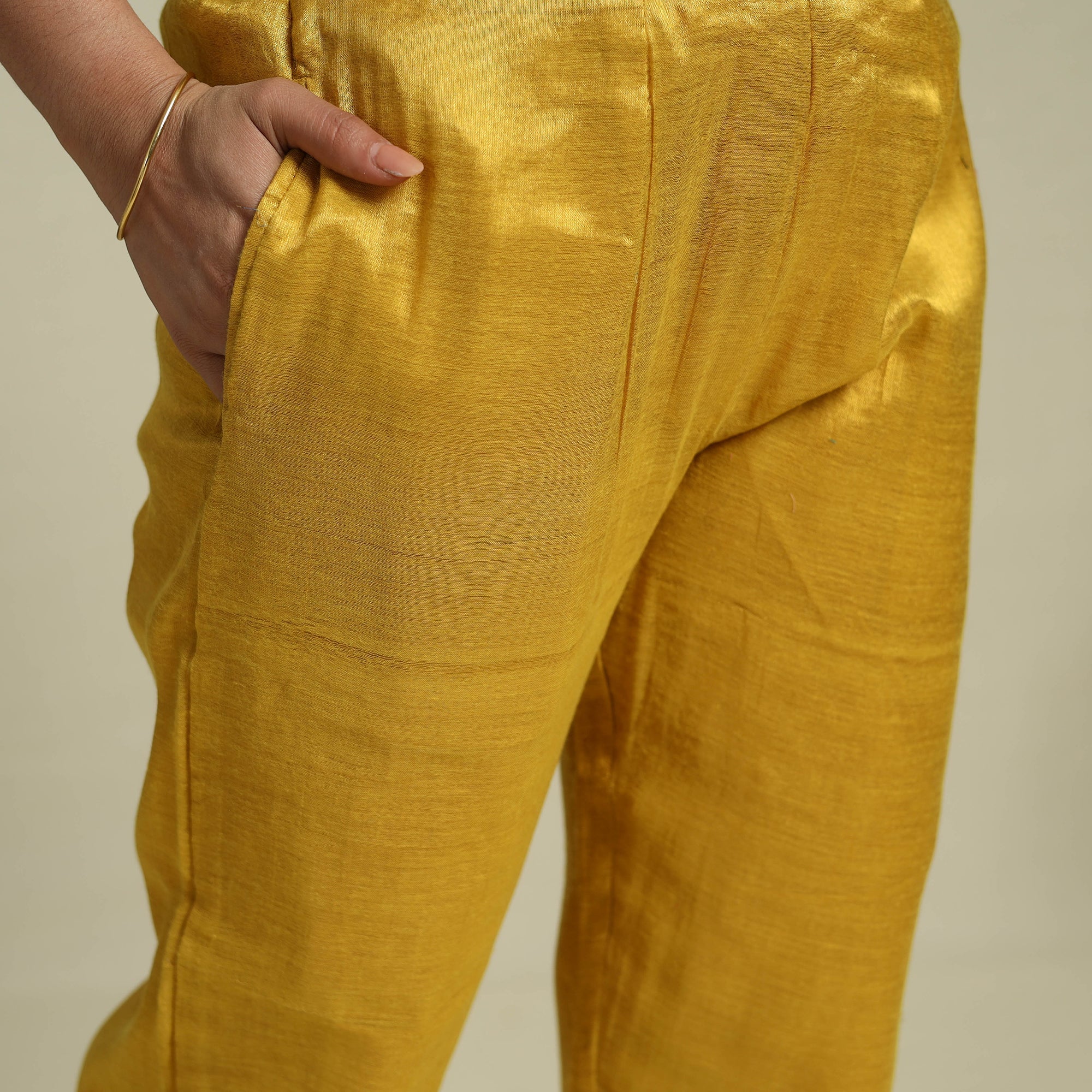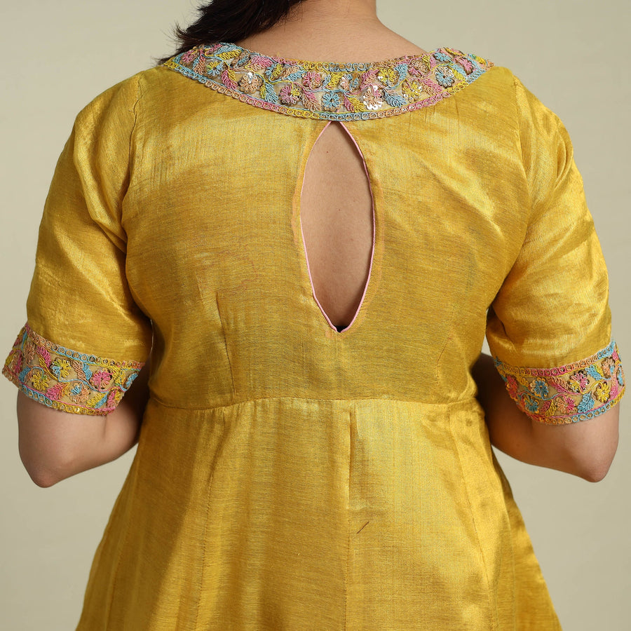 Experience effortless elegance with this fine cotton tissue zari yellow plain Anarkali kurta set, adorned with delicate lacework for a touch of sophistication. Designed for all-day comfort and style, this ensemble effortlessly blends tradition with modern simplicity. The gracefully flared kurta is complemented by matching pants featuring an elasticated waist and two side pockets, ensuring both convenience and elegance. Ideal for both daily wear and festive occasions, this kurta set seamlessly blends traditional craftsmanship with modern simplicity.