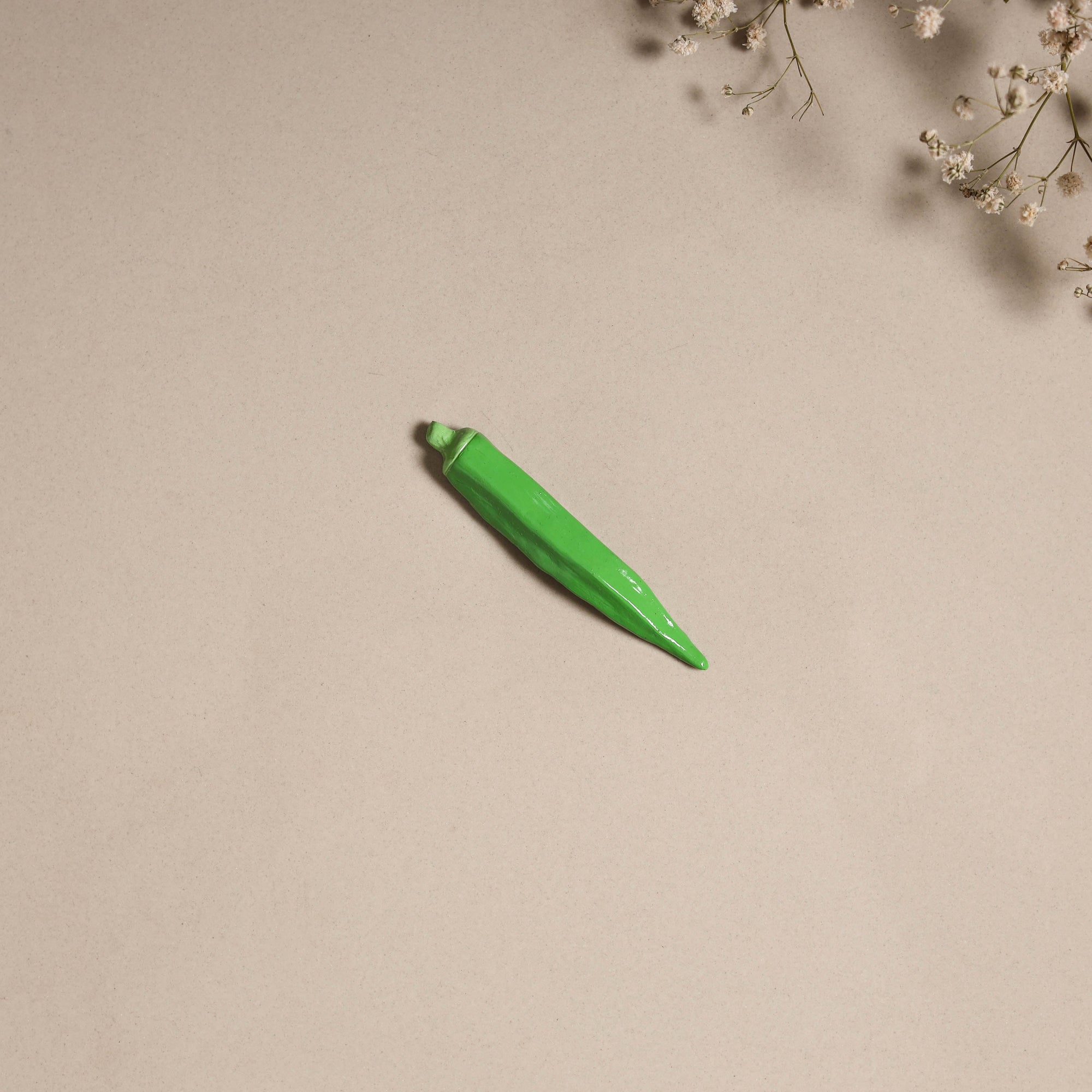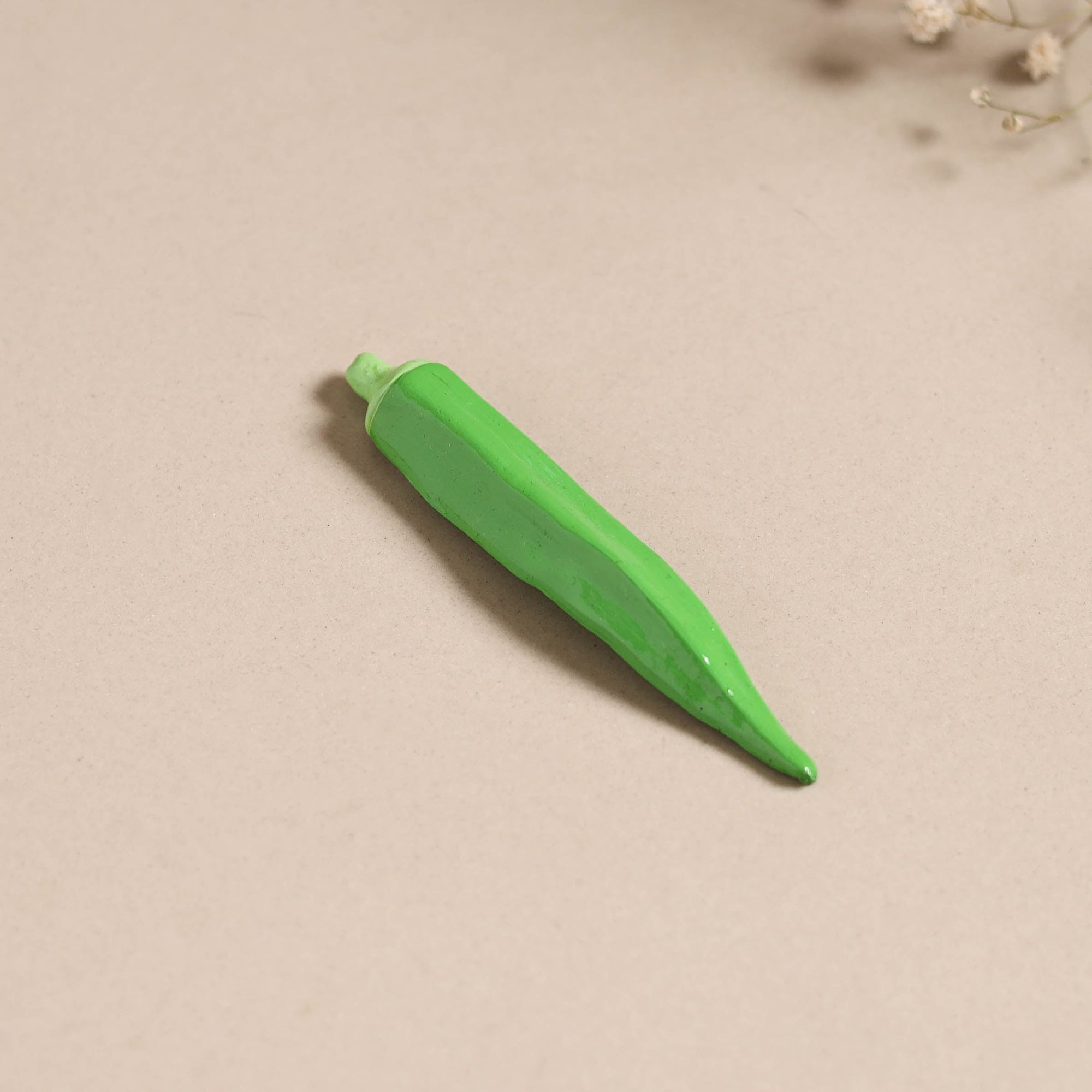 This handpainted terracotta magnet adds a charming touch to your space. Made by master artisan Mahesh Kumar in Lucknow, it is shaped from natural clay and detailed with oil paints. Whether you place it on your fridge or gift it to someone special, it brings a personal, artistic flair.