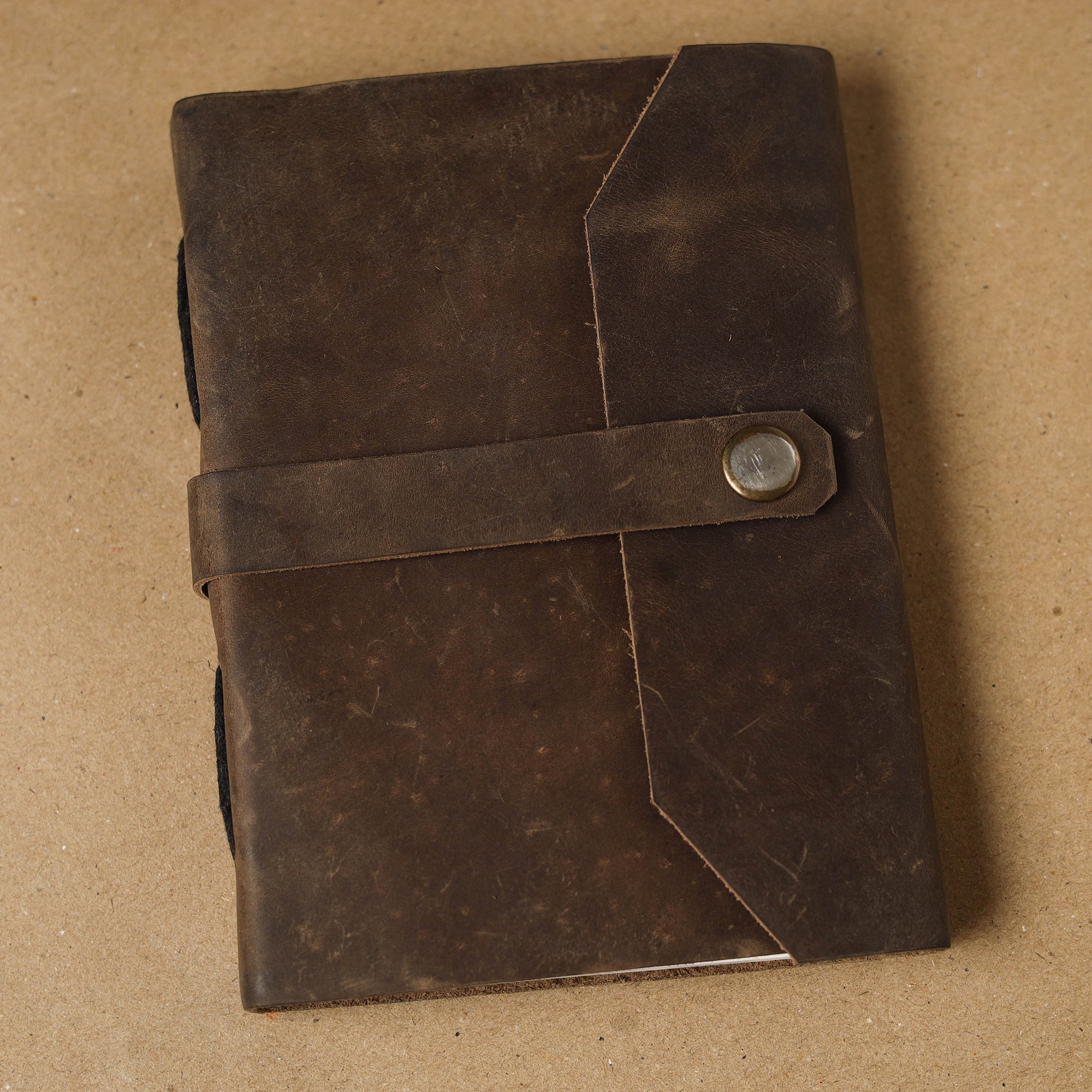 | Material | This notebook comes with a brown soft-bound buffalo leather cover featuring an elegant embellished design. Inside it has smooth handmade paper pages that are perfect for writing, journaling or sketching with ease. Designed for comfort and durability it offers a pleasant writing experience and makes a thoughtful choice for daily use or gifting. |