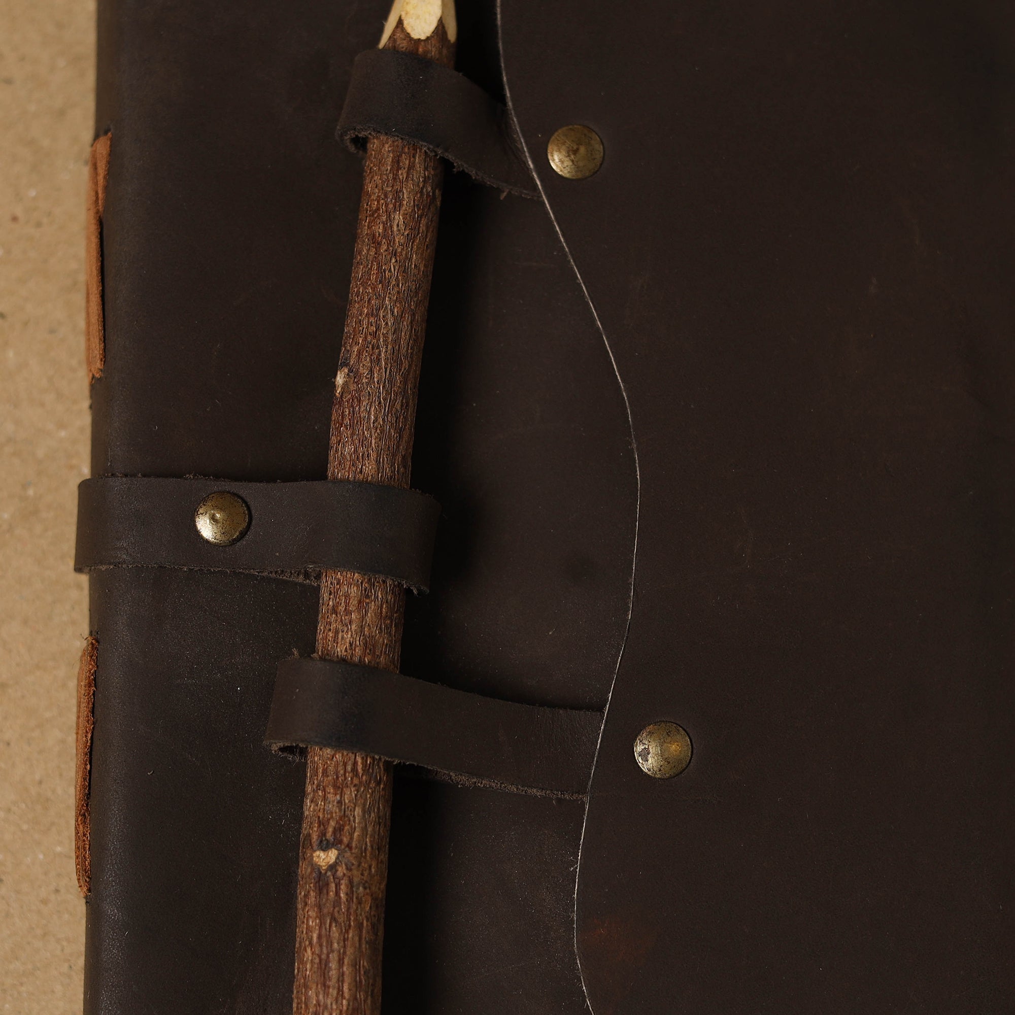 This notebook comes with a brown soft-bound buffalo leather cover featuring an elegant embellished design. Inside it has smooth handmade paper pages that are perfect for writing, journaling or sketching with ease. Designed for comfort and durability it offers a pleasant writing experience and makes a thoughtful choice for daily use or gifting.