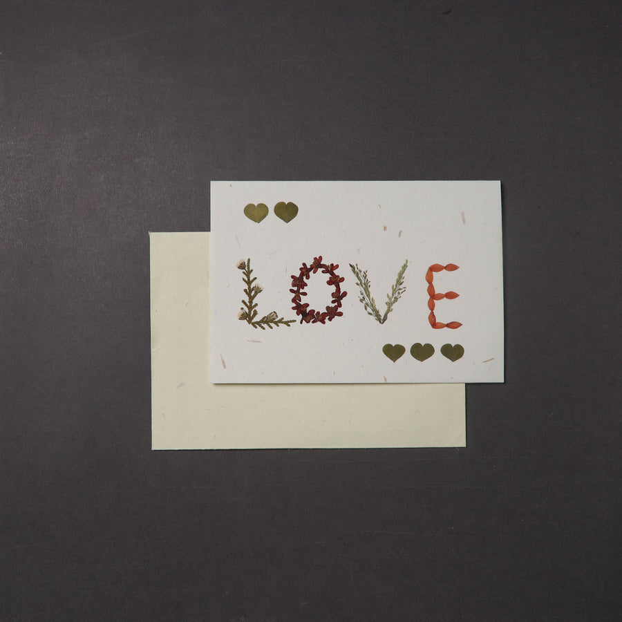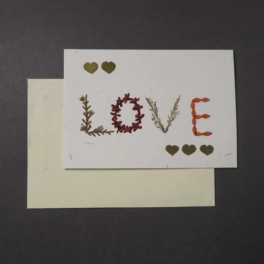 Capture the beauty of nature with flower art handmade greeting card. This card is crafted using recycled cotton and rice straw, featuring intricate pressed flowers and leaves that add a personal, eco-friendly touch. This card come with a matching envelope and are a true reflection of sustainable craftsmanship.