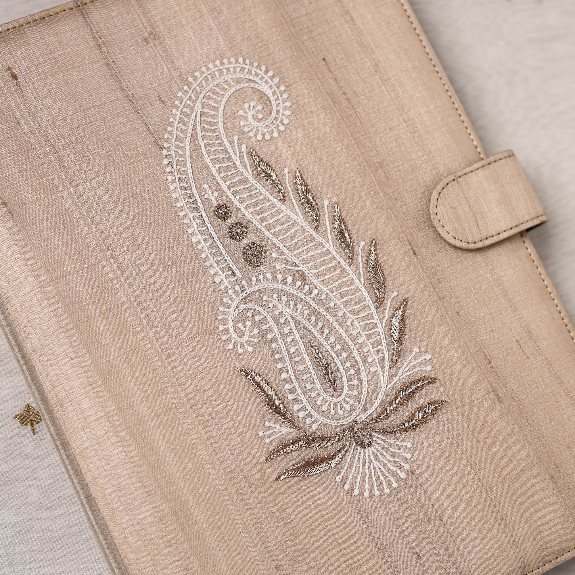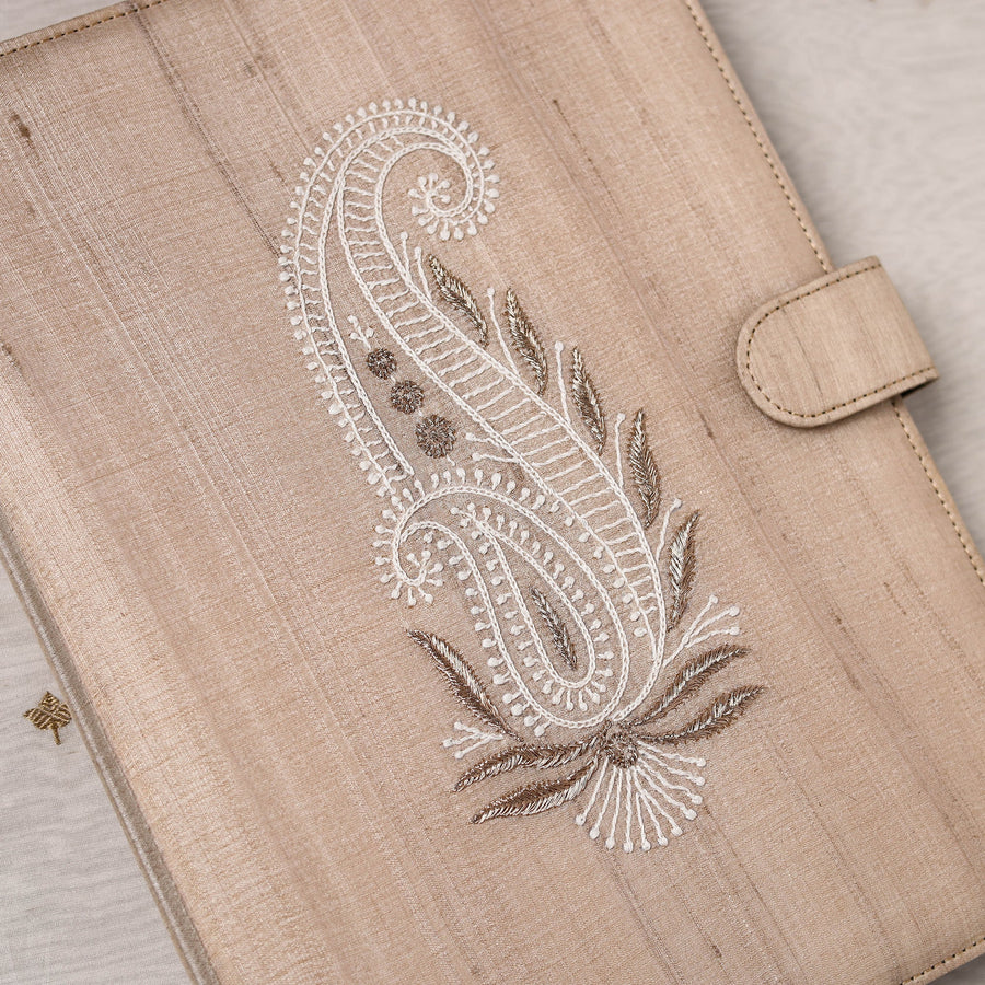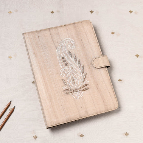 • Beige Lucknow Chikankari Embroidery Tussar Silk File Folder