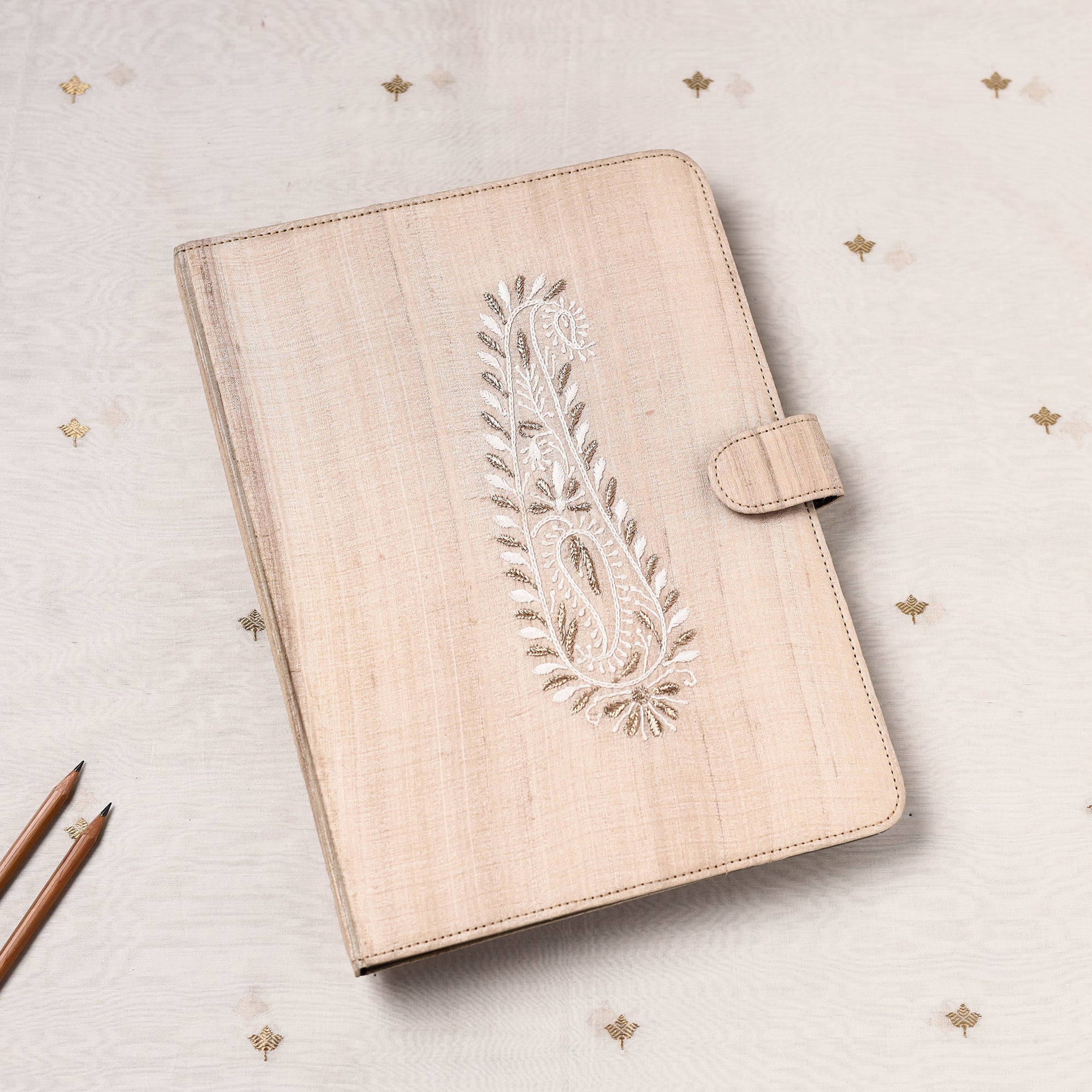 Step into the world of artisanal elegance with our beige lucknow chikankari hand embroidery tussar silk file folder. This exquisite piece showcases the meticulous artistry of Chikankari. Handcrafted by skilled artisans, the delicate embroidery on Tussar silk highlights pastel threads. Creating a subtle yet luxurious texture. Add this timeless piece to your collection and celebrate the rich heritage of Indian hand embroidery.