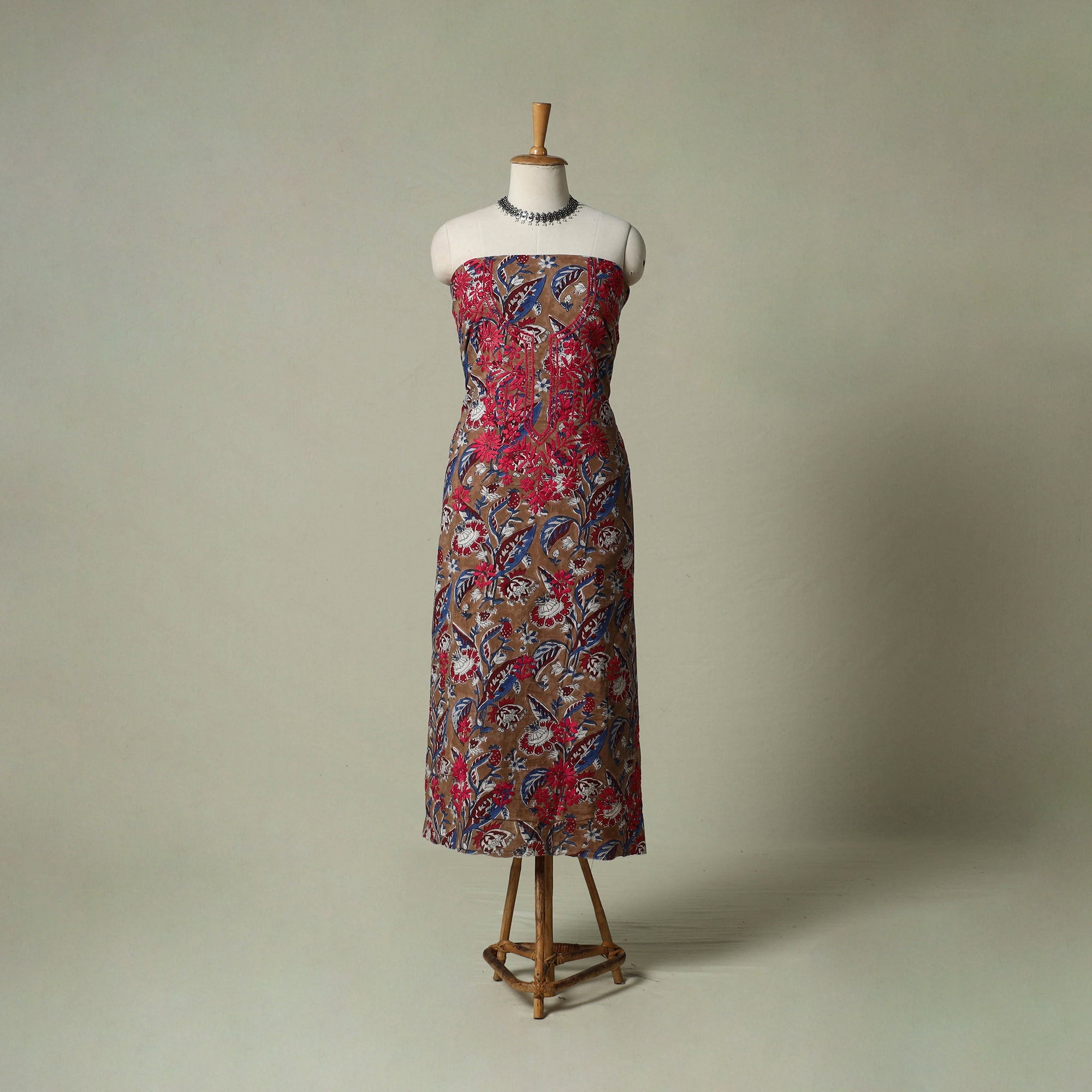Lucknowi chikankari cotton sanganeri unstitched kurta material beautifully brings together two centuries old crafts delicate chikankari hand embroidery with traditional sanganeri hand block printing. While chikankari involves fine, detailed needlework done by hand, Sanganeri printing uses hand-carved wooden blocks to create intricate floral patterns. Crafted by skilled artisans, it can be tailored to suit your style, making it perfect for both occasions and refined everyday wear.
