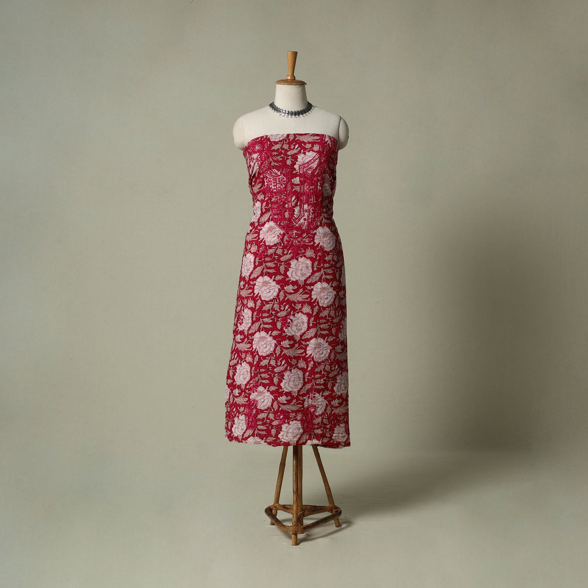 Lucknowi Chikankari Hand Embroidery Sanganeri Unstitched Kurta Material (2.5M) 32