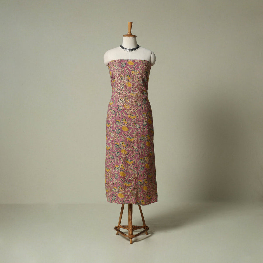 Lucknowi chikankari cotton sanganeri unstitched kurta material beautifully brings together two centuries old crafts delicate chikankari hand embroidery with traditional sanganeri hand block printing. While chikankari involves fine, detailed needlework done by hand, Sanganeri printing uses hand-carved wooden blocks to create intricate floral patterns. Crafted by skilled artisans, it can be tailored to suit your style, making it perfect for both occasions and refined everyday wear.