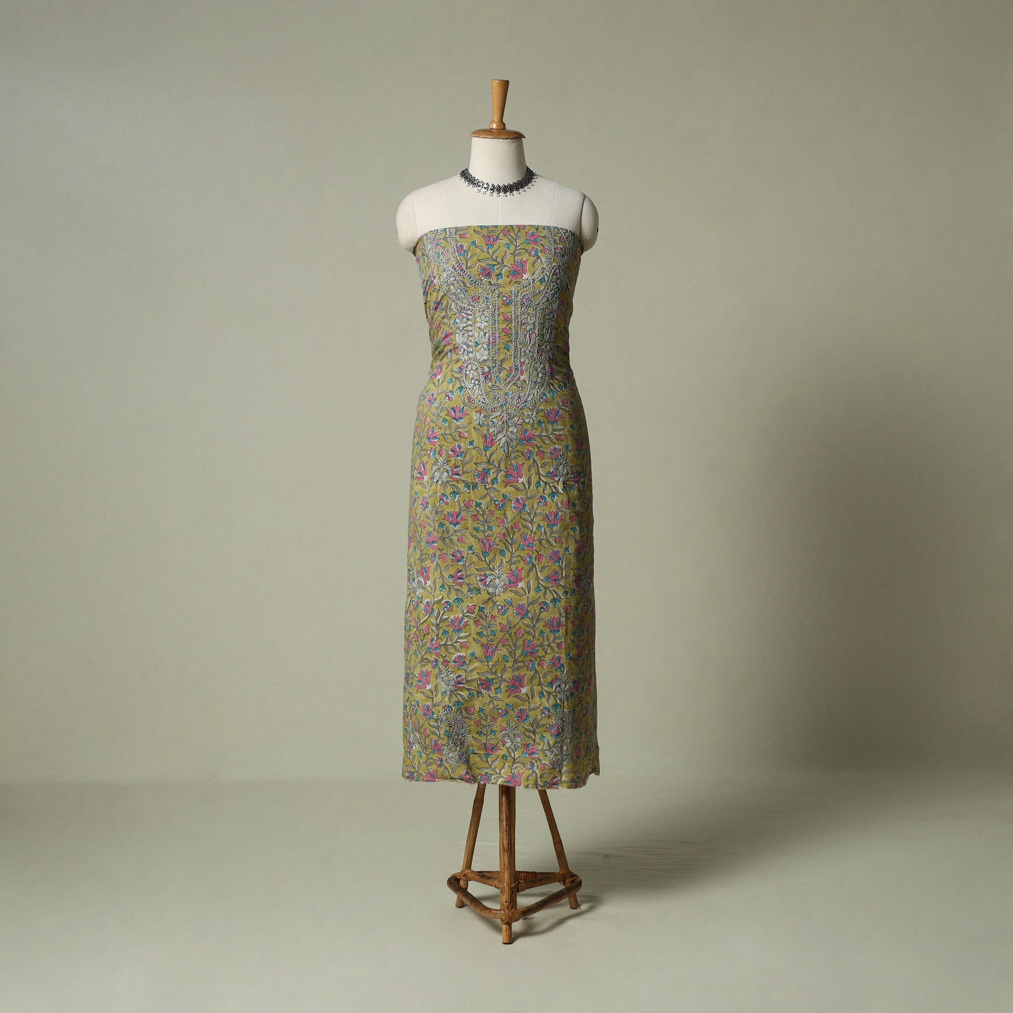Lucknowi Chikankari Hand Embroidery Sanganeri Unstitched Kurta Material (2.5M) 49
